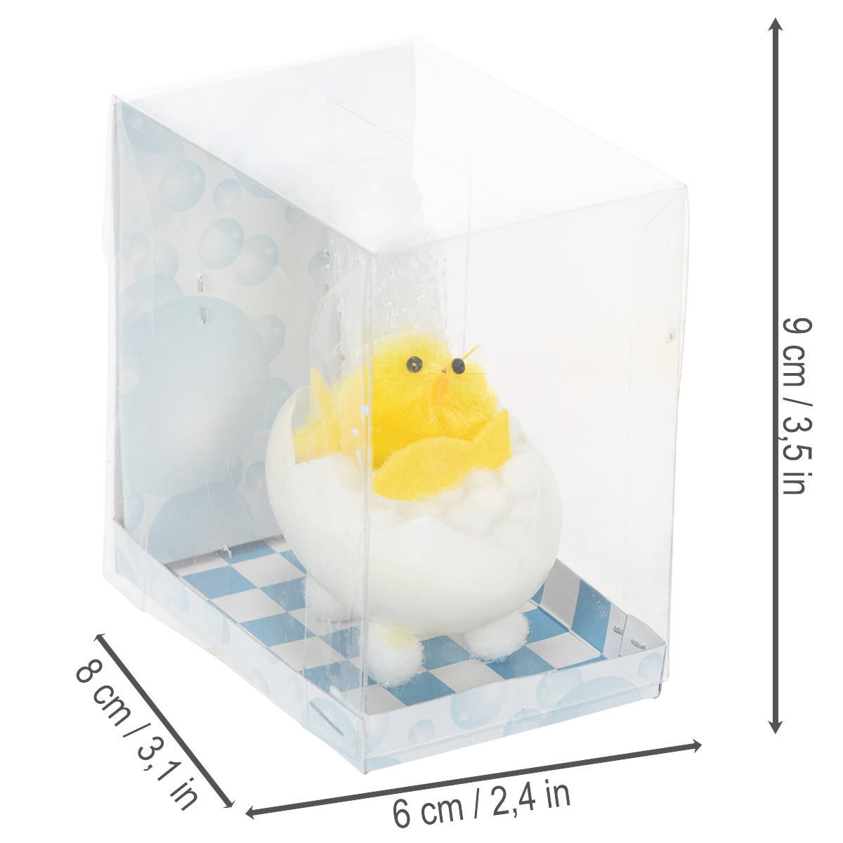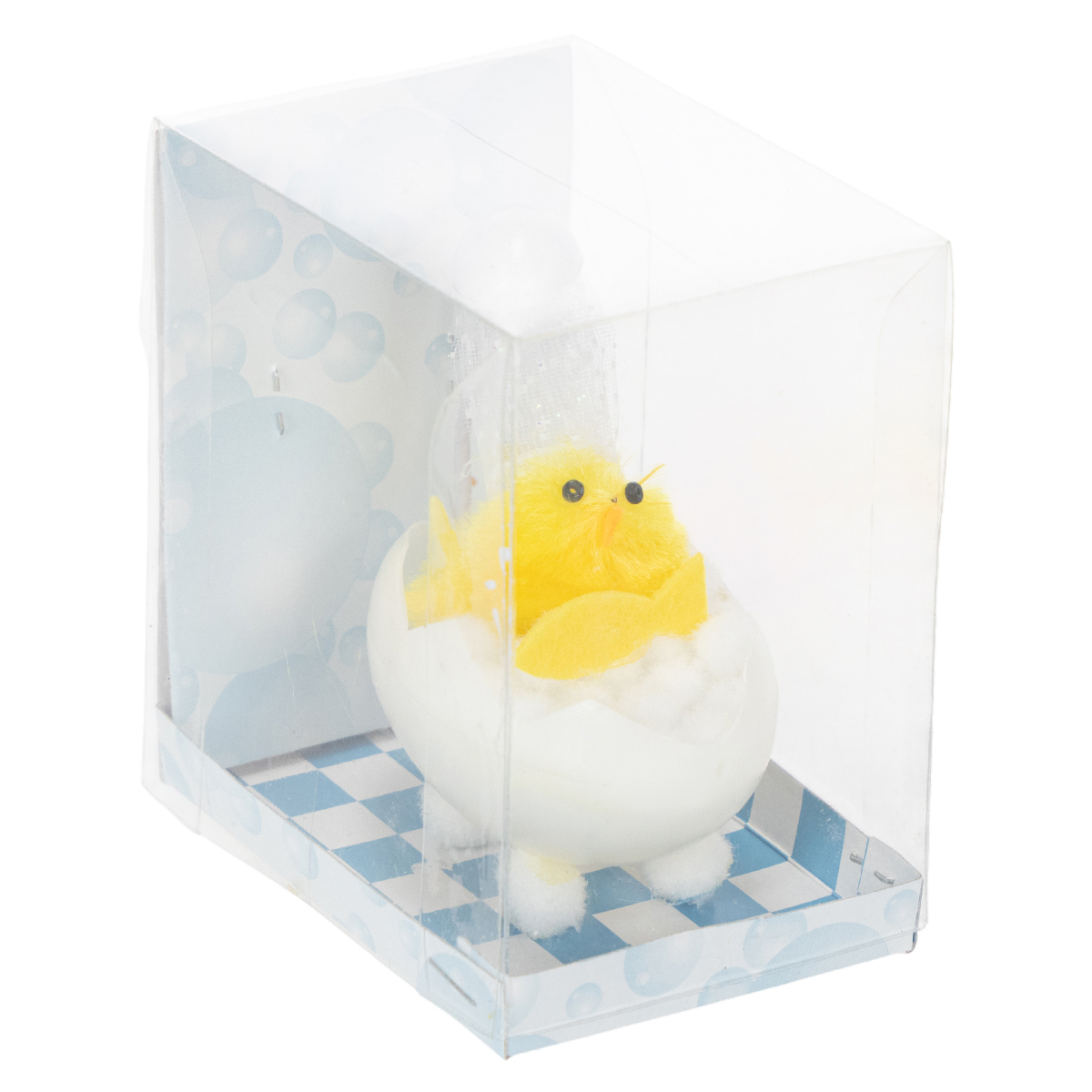 Decorazione pasquale a forma di pulcino, pulcino in ciniglia nella vasca da bagno, giallo, 9 cm