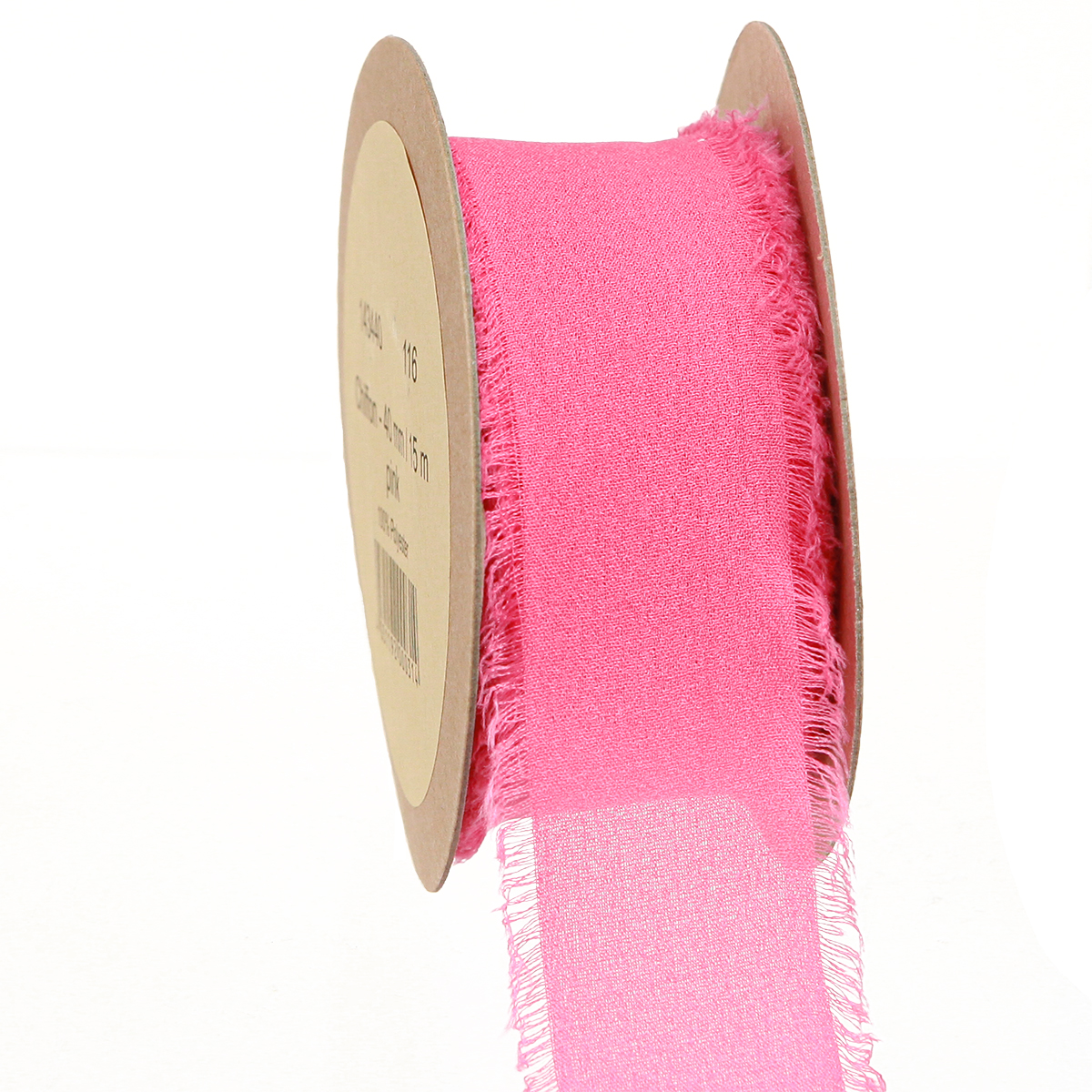 Ruban en mousseline de soie rose fluo avec franges 40 mm 15 m