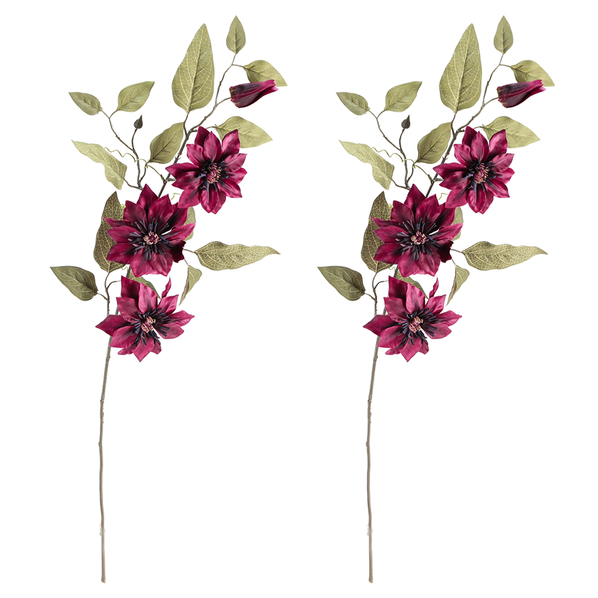 Clematis artificiale 3 fiori fiori artificiali Bordeaux 81cm 2 pezzi