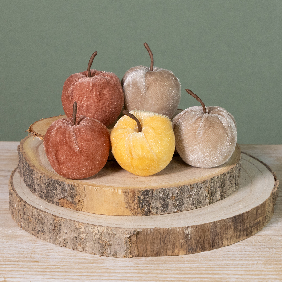 Aggiungi un tocco di eleganza e raffinatezza al tuo arredamento con le nostre mele decorative in tessuto. Queste mele in velluto, disponibili negli eleganti colori autunnali del marrone rossastro, del beige e del giallo, donano una vellutata lucentezza a qualsiasi ambiente. Queste piccole mele decorative sono perfette per realizzare design di ispirazione minimalista e si integrano perfettamente in una varietà di stili, dal moderno stile country all'elegante shabby chic. Composte da un nucleo in polistirolo, ogni mela è ricoperta di velluto artificiale per una consistenza fine e una finitura gradevole. Con un diametro di circa 5 cm e un'altezza di circa 6 cm, queste mele decorative in tessuto sono ideali per decorazioni autunnali da tavola in sala da pranzo o per creare un elemento di particolare impatto visivo in vetrine e scaffali. Combinandole con altri prodotti stagionali del nostro assortimento su Floristik24, puoi dare libero sfogo alla tua creatività.
