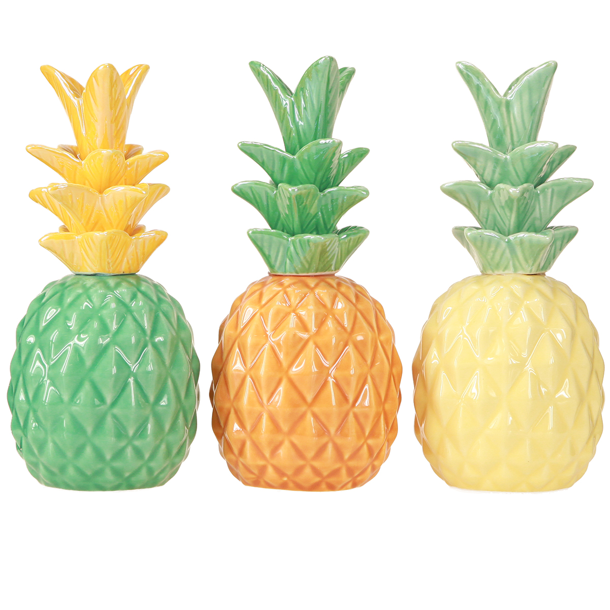 - Ananas en céramique colorés en trois couleurs différentes