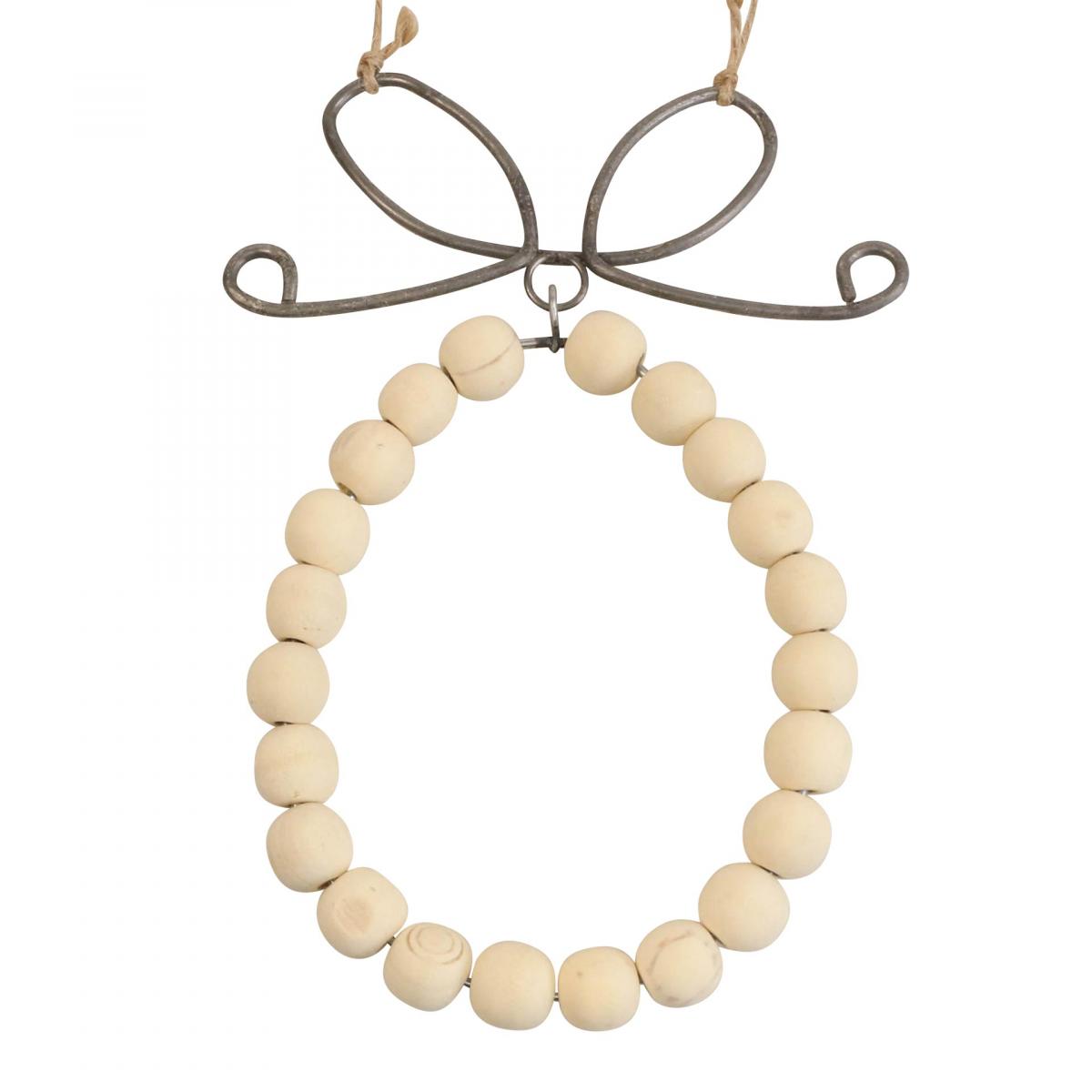 Ganz aus Metall ist die Schleife, die über der Holzperlen-Deko thront. Die Metall-Schleife ist in Silber-Optik gehalten. Da passt auch die Kordel in Naturfarben wunderbar zum Gesamtbild.