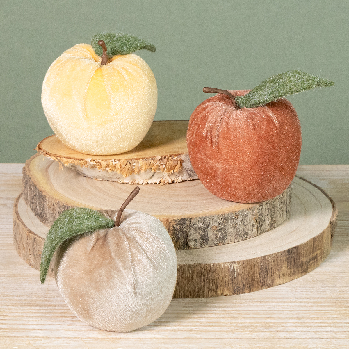 Der Deko-Apfel aus Samt mit einem Blatt aus Filz passt perfekt in Ihre herbstliche Dekoration. Leben Sie Ihre Kreativität aus mit diesen stilvollen Samt-Äpfeln, die sorgfältig in drei warmen Herbstfarben gestaltet sind: Rotbraun, Beige und Gelb. Jeder künstliche Samt-Apfel ist detailreich gestaltet und besteht aus überzogenem Styropor, das mit einem weichen Stoff bedeckt ist. Der samtige Schimmer und das grüne Filzblatt, kombiniert mit einem kleinen braunen Stiel, runden das detailreiche Erscheinungsbild ab und bieten eine exquisite Ergänzung für Ihre Wohnzimmerdekoration oder Herbstgestecke auf dem Tisch. Ob als Teil eines eleganten Regals, inmitten einer saisonalen Partydekoration oder für kreative Fotohintergründe – dank ihrer Vielseitigkeit sind diese Äpfel ein Highlight Ihrer Dekoration.