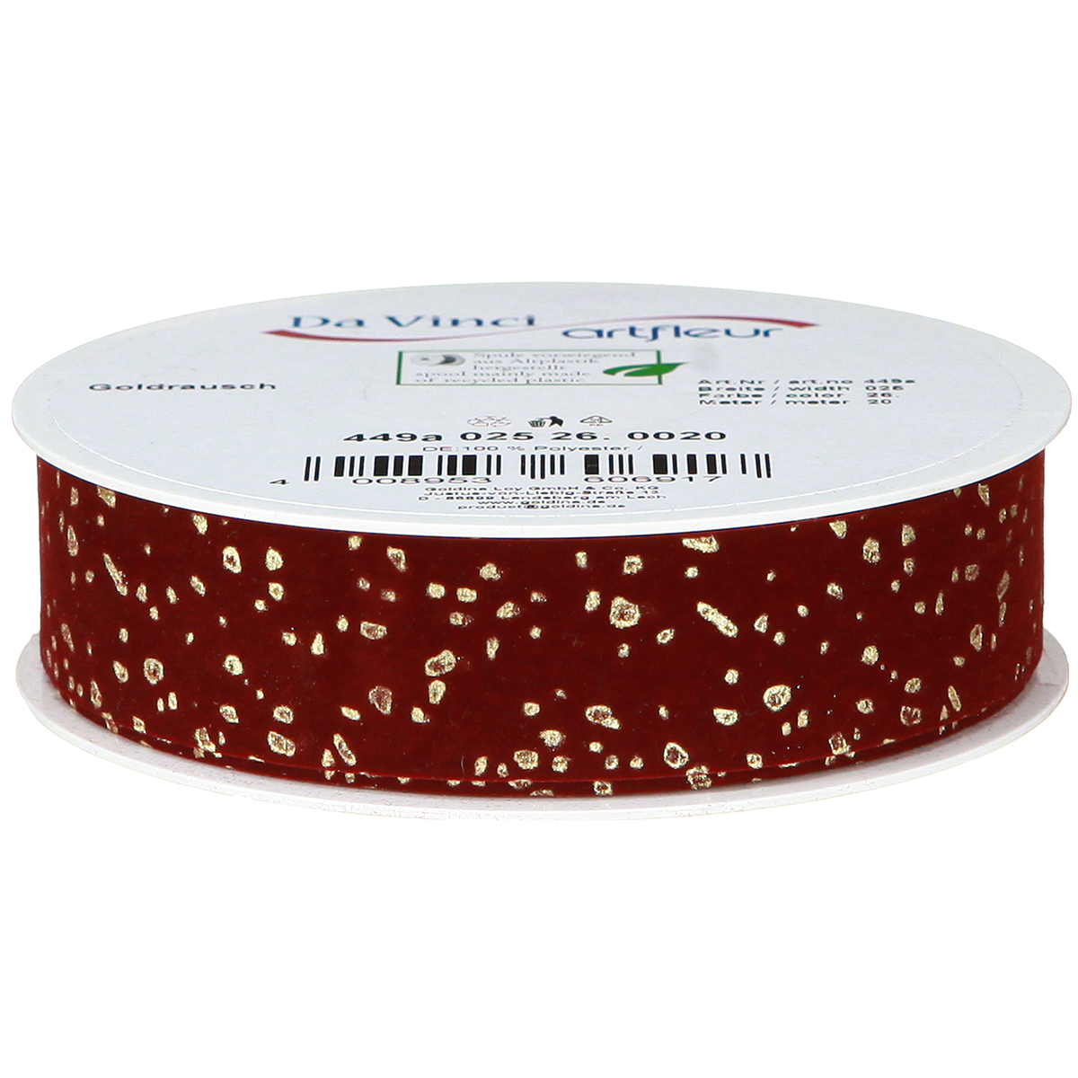 Produktname: Deko Band Dunkelrot mit goldenen Sprenkeln 15mm 20m