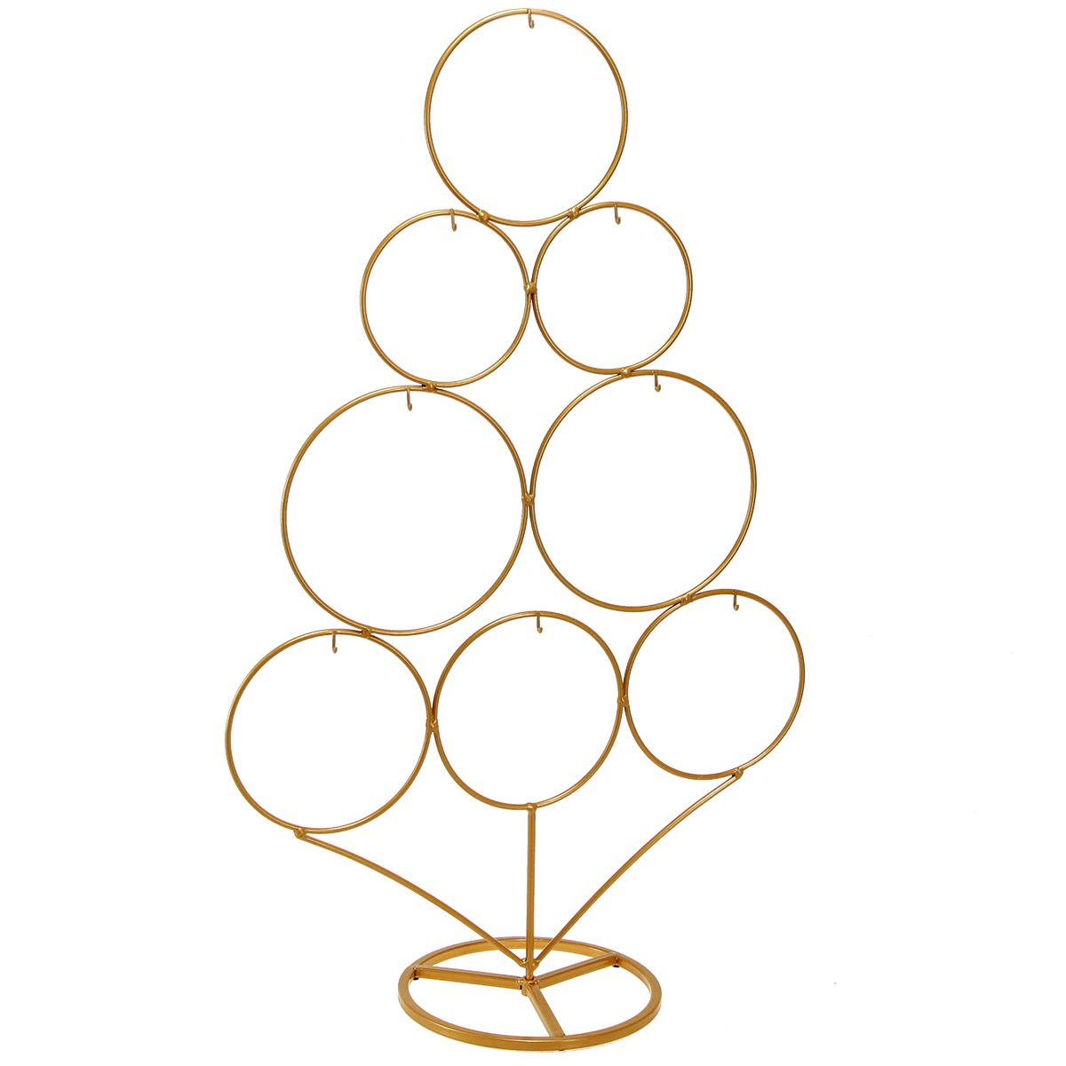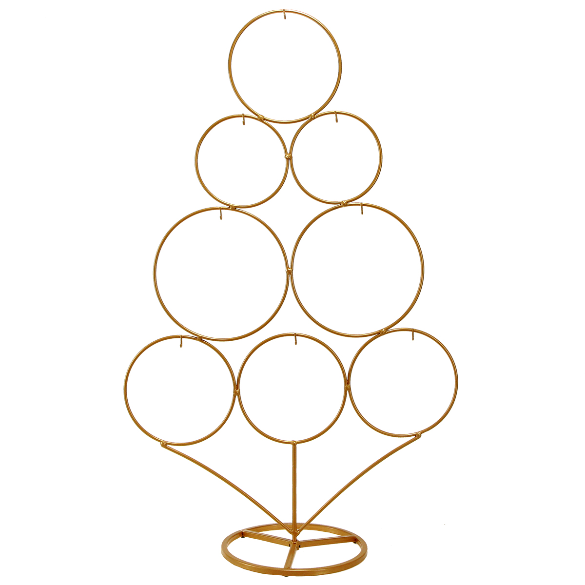 Ob als festliche Tischdeko zu Weihnachten oder als exklusiver Büro-Weihnachtsakzent – der goldene Metallbaum fügt sich harmonisch in verschiedene Interieurs ein und lässt sich ideal mit anderen Accessoires, wie Kerzenhaltern oder Weihnachtskugeln, kombinieren. Präsentieren Sie einzelne, besonders schöne Elemente des Christbaumschmucks in den Ringen oder gestalten Sie den Dekobaum mit Trockenblumen und Gräsern aus. Wenn Sie drei Beutelchen an jedem Haken aufhängen, können Sie den Baum aus Metall sogar zum Adventskalender ausgestalten!