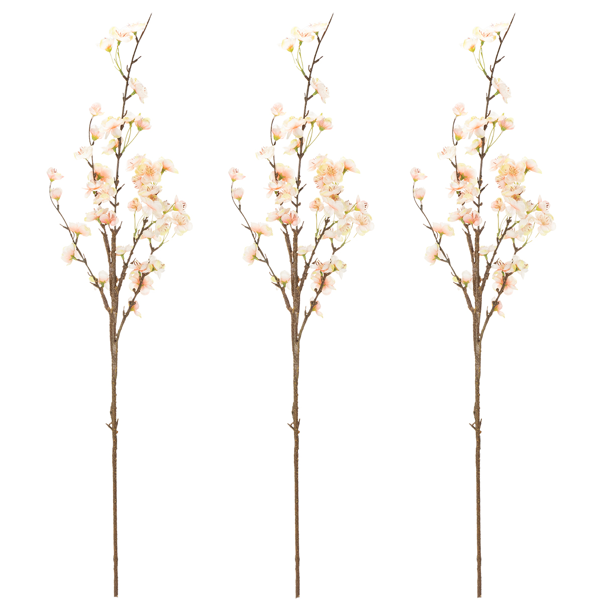 Branche fleurie décorative avec délicates fleurs de cerisier, 83 cm, 3 pièces