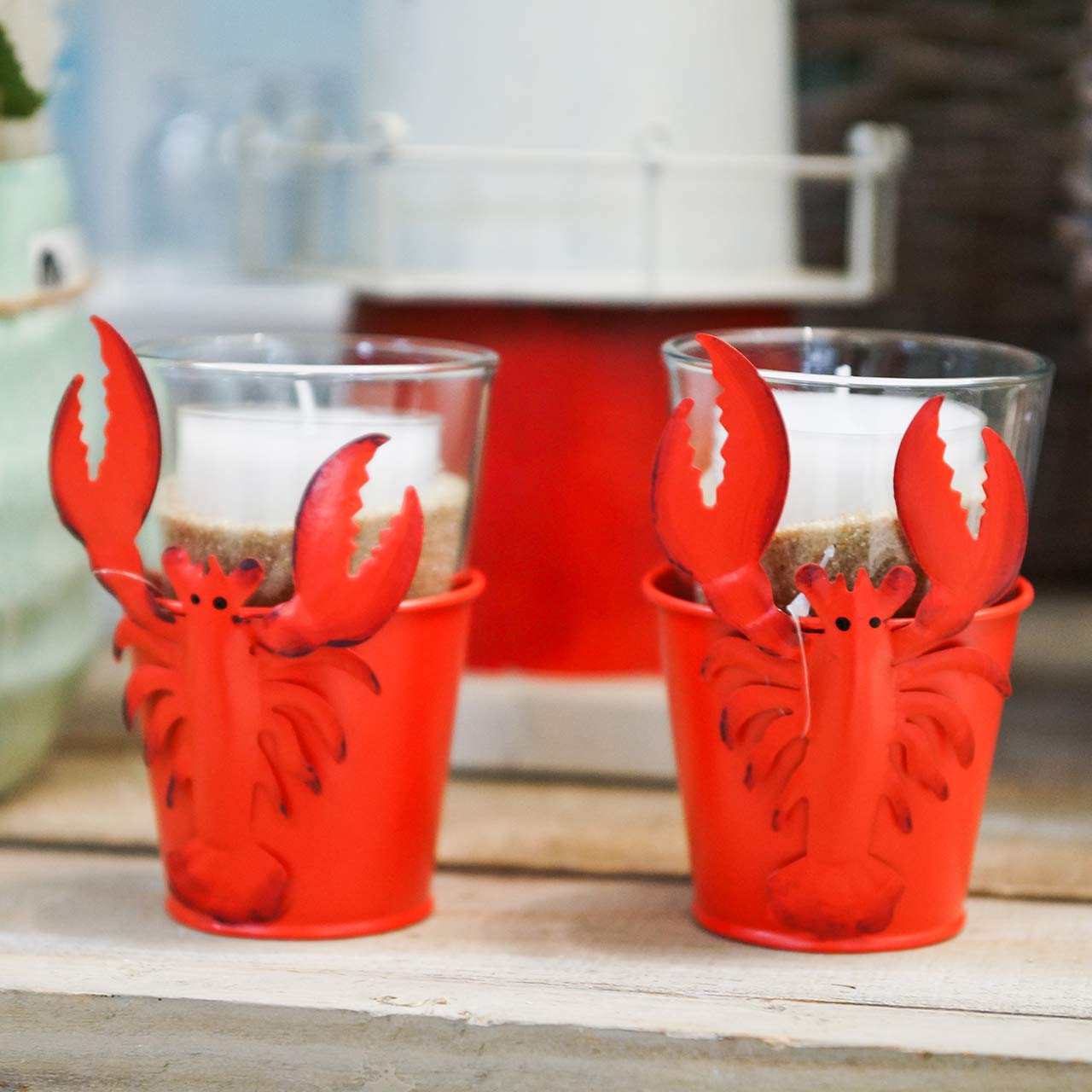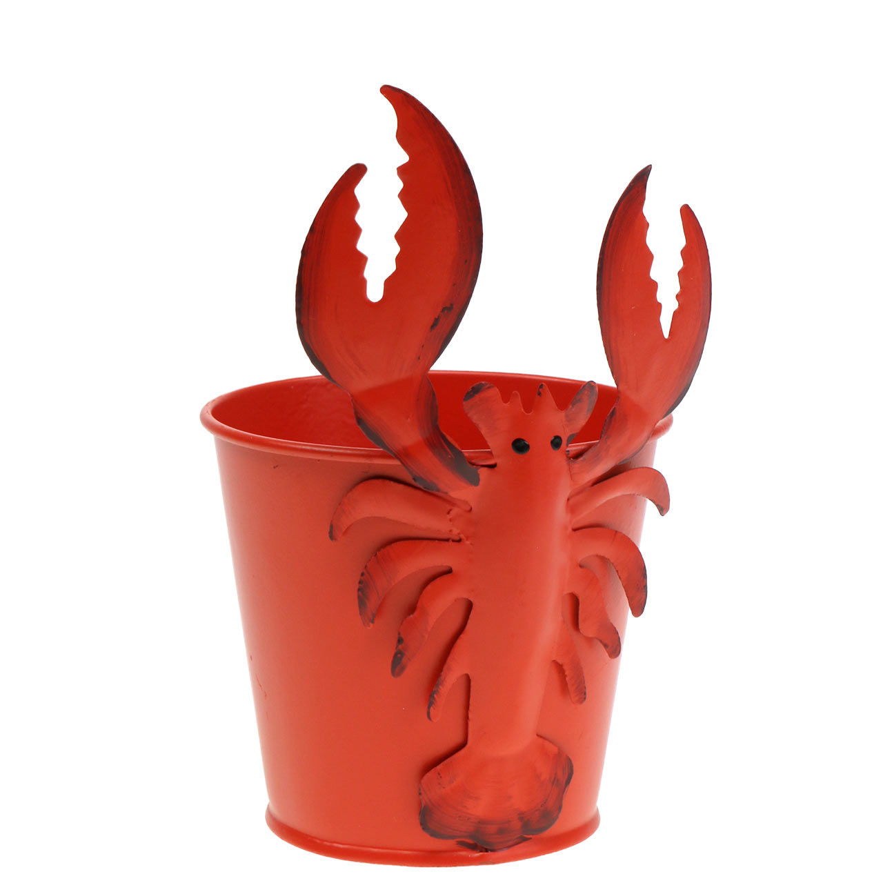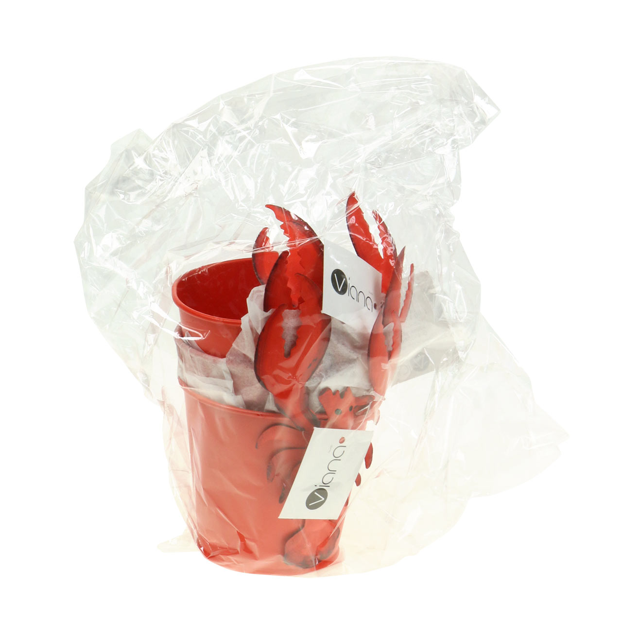 Secchio decorativo aragosta in metallo rosso Ø8cm H13cm 3 pz