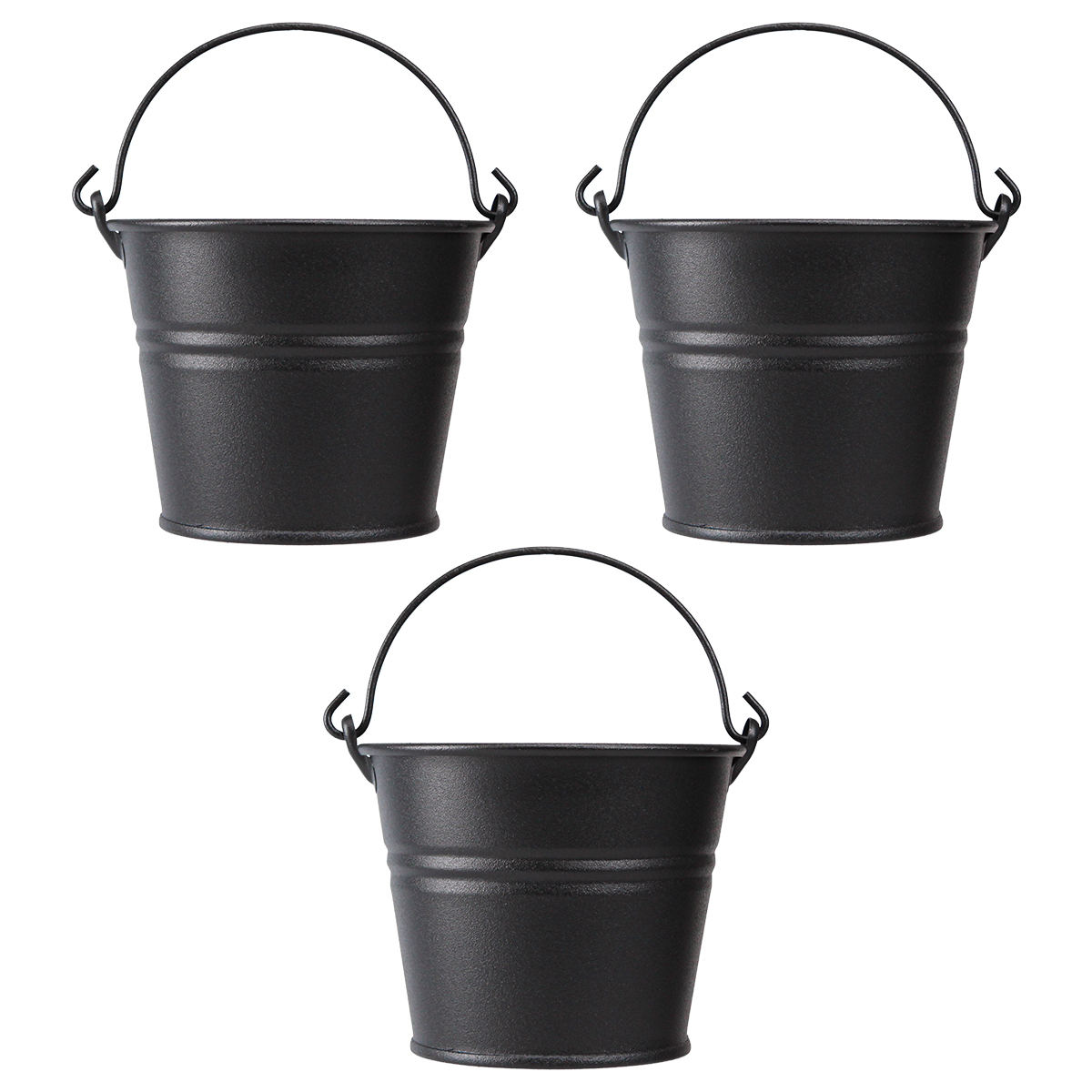 Deko Eimer Metall Blumentopf Henkel Schwarz Ø14cm 3St