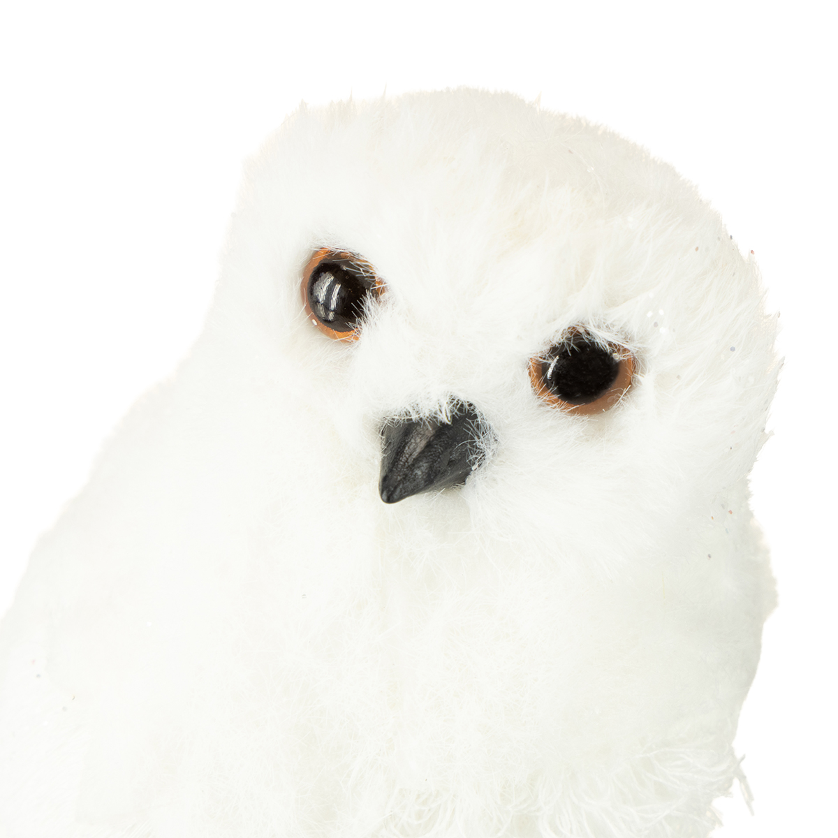 Chouette des neiges décorative blanche avec fourrure et plumes 15,5 cm 2 pièces