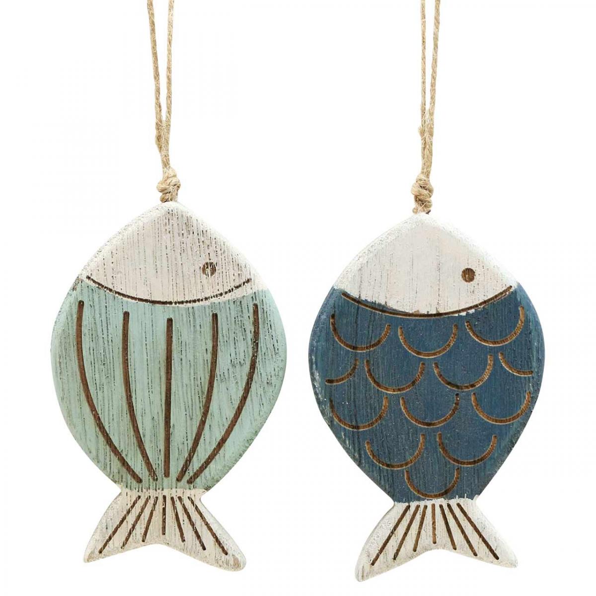 Deko Fisch Maritime Hängedeko Holzfisch Blau H11cm 6St