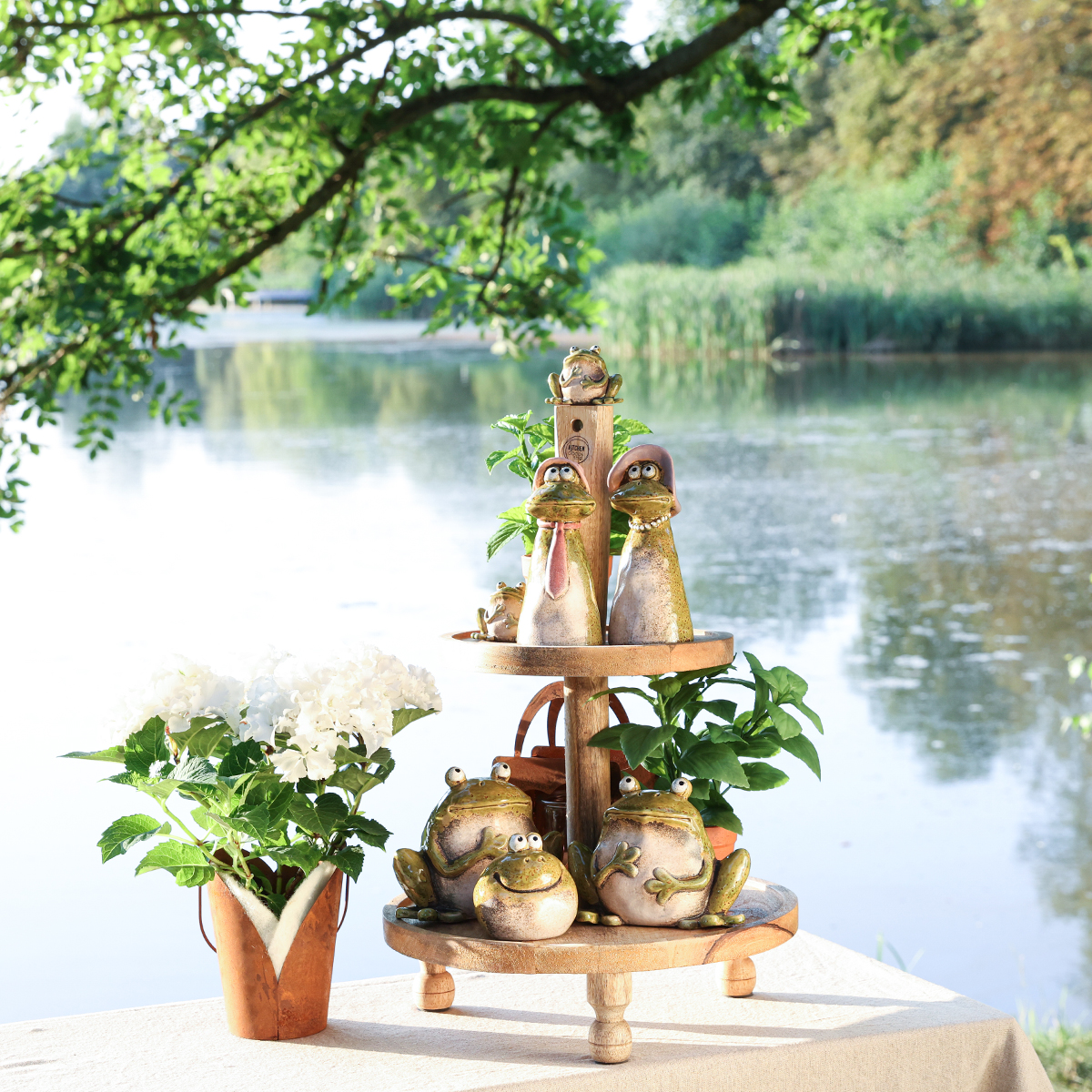 Diese grün-braunen Keramik-Frösche harmonieren hervorragend mit natürlichen Materialien und Texturen. Kombinieren Sie sie mit anderen Dekoelementen wie Holz oder Stein für ein natürliches Flair. Auf Floristik24 finden Sie passende Artikel wie rustikale Holzschalen oder Steinkerzenhalter, die die sanften Töne und Texturen der Froschdeko perfekt ergänzen. Besonders schön wirken die Frösche in Kombination mit saisonalen Blumenarrangements oder frischem Grün aus dem Garten. Ihre symbolischen Frühlingsassoziationen werden durch diese kreativen Einsatzmöglichkeiten unterstrichen.