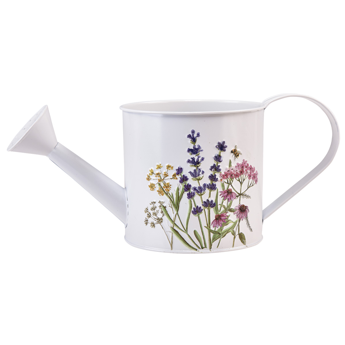 Cet arrosoir décoratif en métal blanc pour plantation présente un joli motif naturel en relief d'herbes sauvages et une abeille sur un côté.Le gaufrage du pot montre une abeille occupée et les inflorescences d'aneth, de lavande, d'origan et d'échinacée, chacune colorée dans des couleurs assorties. – Quand on voit l’arrosoir pour planter, on a tout de suite l’impression d’être au printemps !