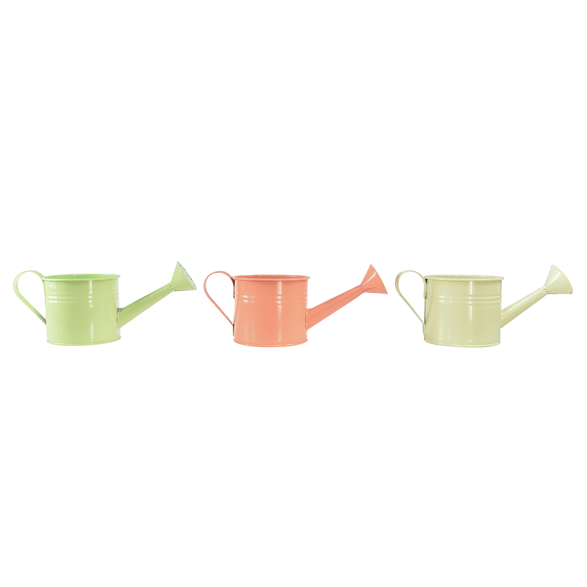 Deko Gießkanne Set in Pastell Lachs, Grün, Gelbgrün - Met...