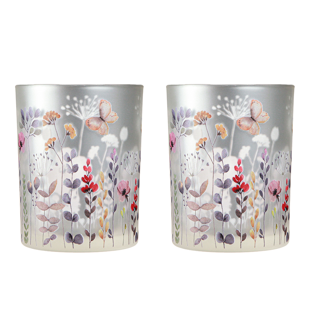 Lanterne en verre coquelicot prairie couleur argent H12,5cm 2 pcs