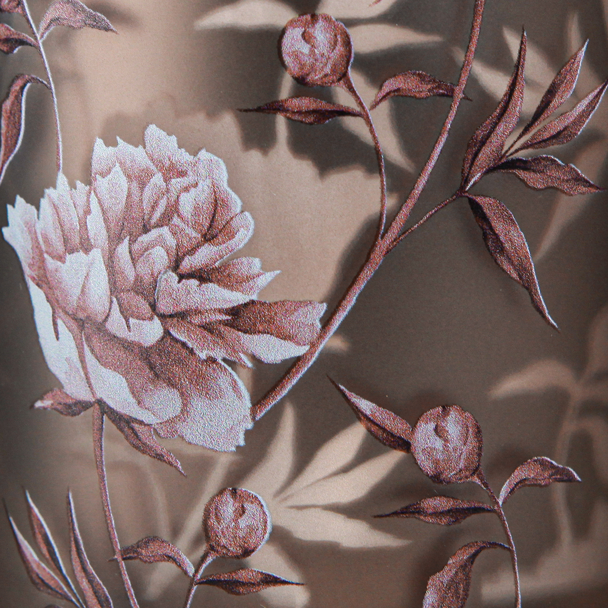 Elegante decorazione primaverile: vetro decorativo marrone con peonie rosa ed effetto 3D