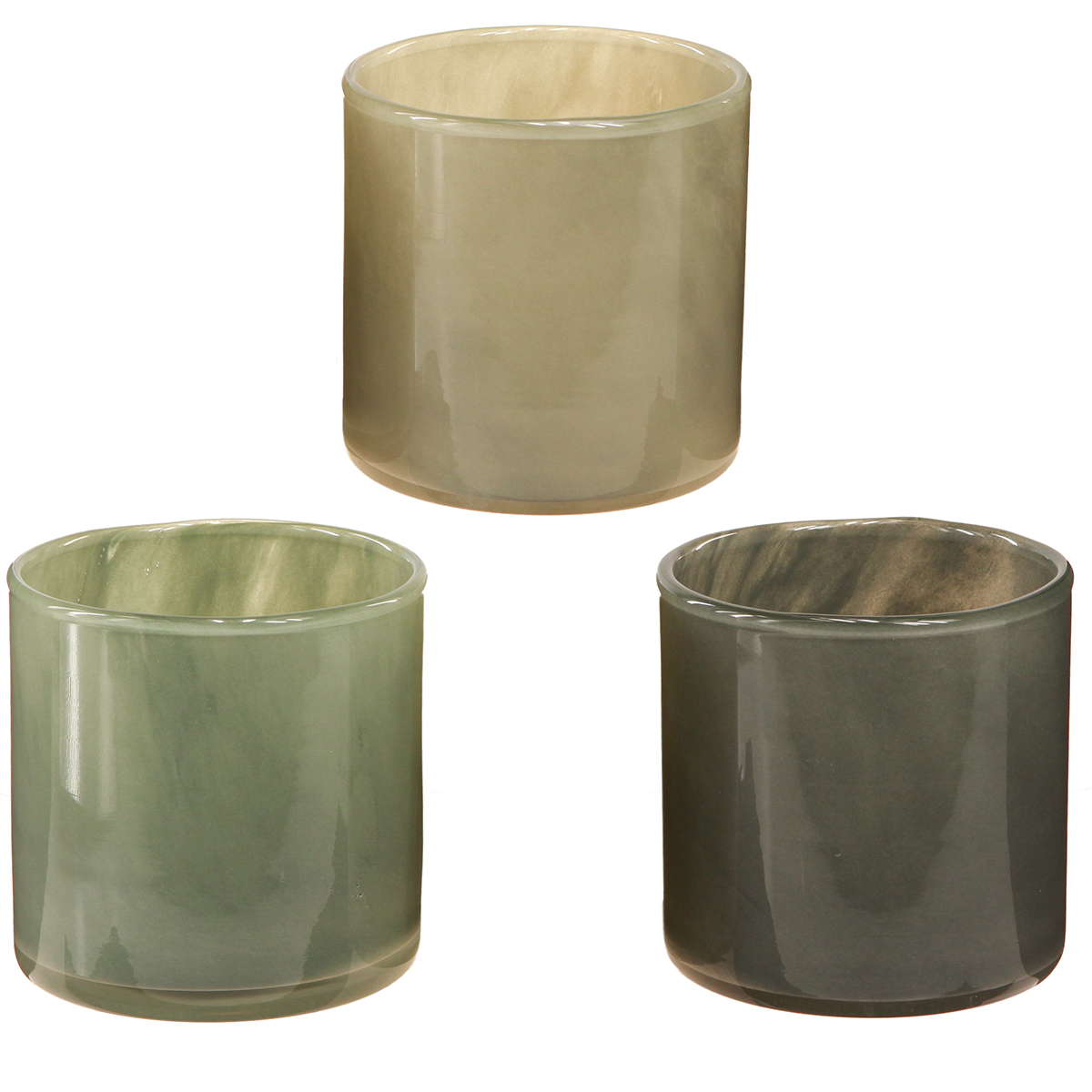 Deko Glas Übertopf in Grün Hellgrau Grau H10cm 3 St