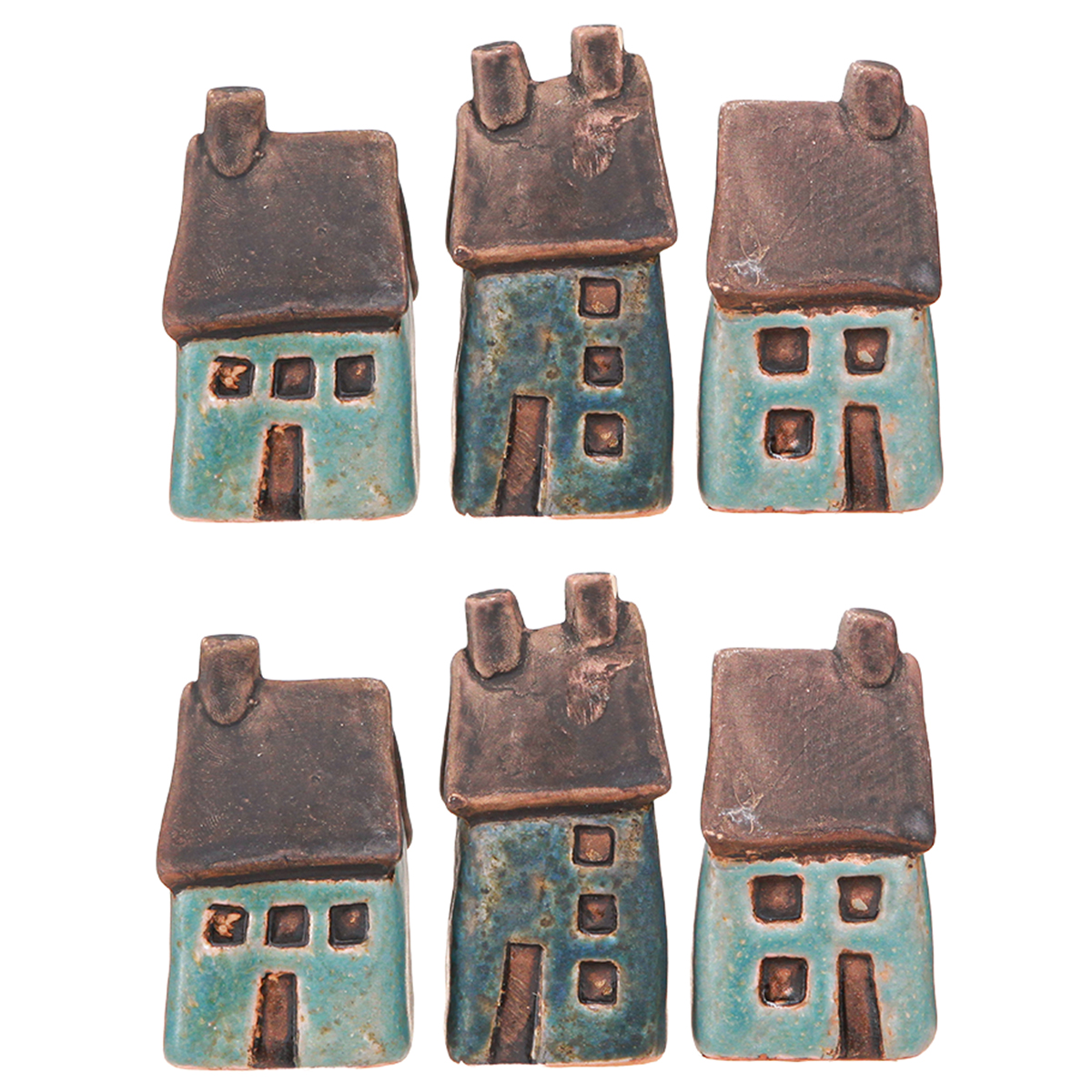 Maison décorative en céramique bleu marron vintage H6,5/7cm 6 pcs