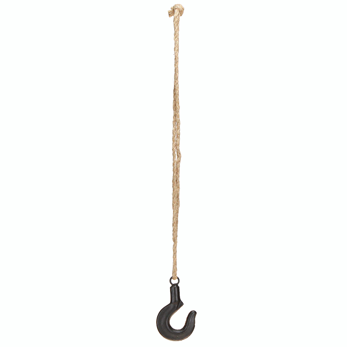 Crochet décoratif en métal noir avec cordon en jute H54cm