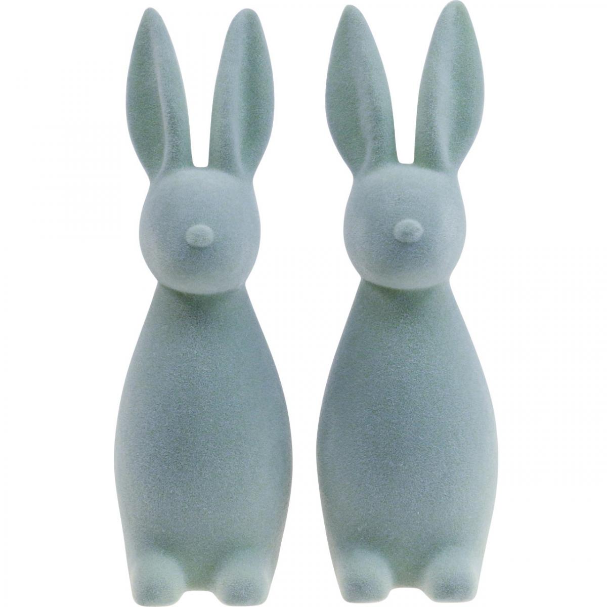 Coniglietto pasquale decorativo floccato – 2a scelta – Grigio-verde H29,5cm 2 pezzi