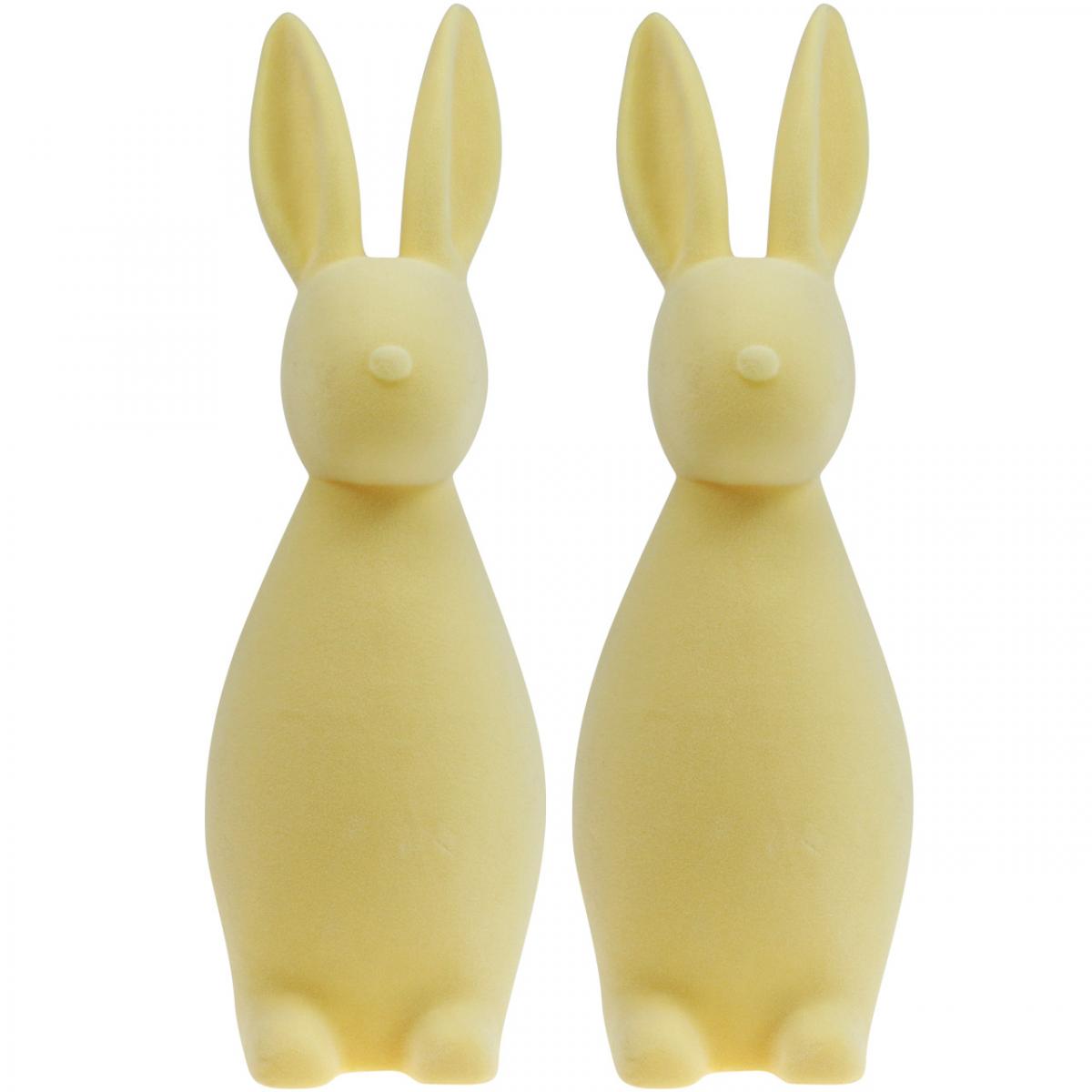 Coniglietto pasquale decorativo – 2a scelta – floccato giallo chiaro H29,5cm 2 pezzi