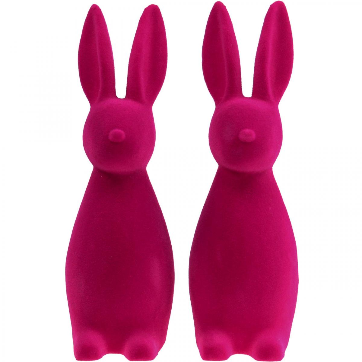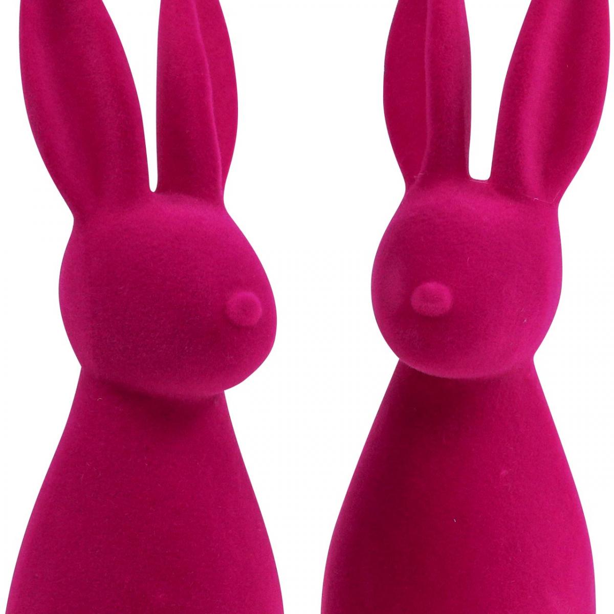 Coniglietto pasquale decorativo, rosa floccato, altezza 29,5 cm, 2 pezzi