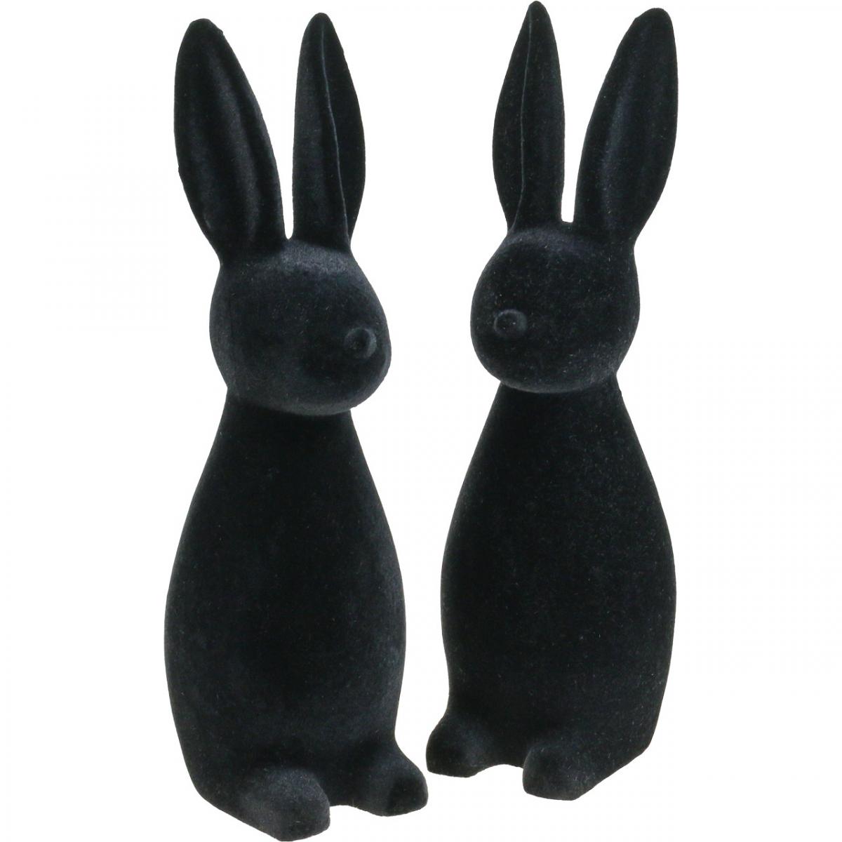 Coniglietto pasquale nero decorativo, floccato, altezza 29,5 cm, 2 pezzi