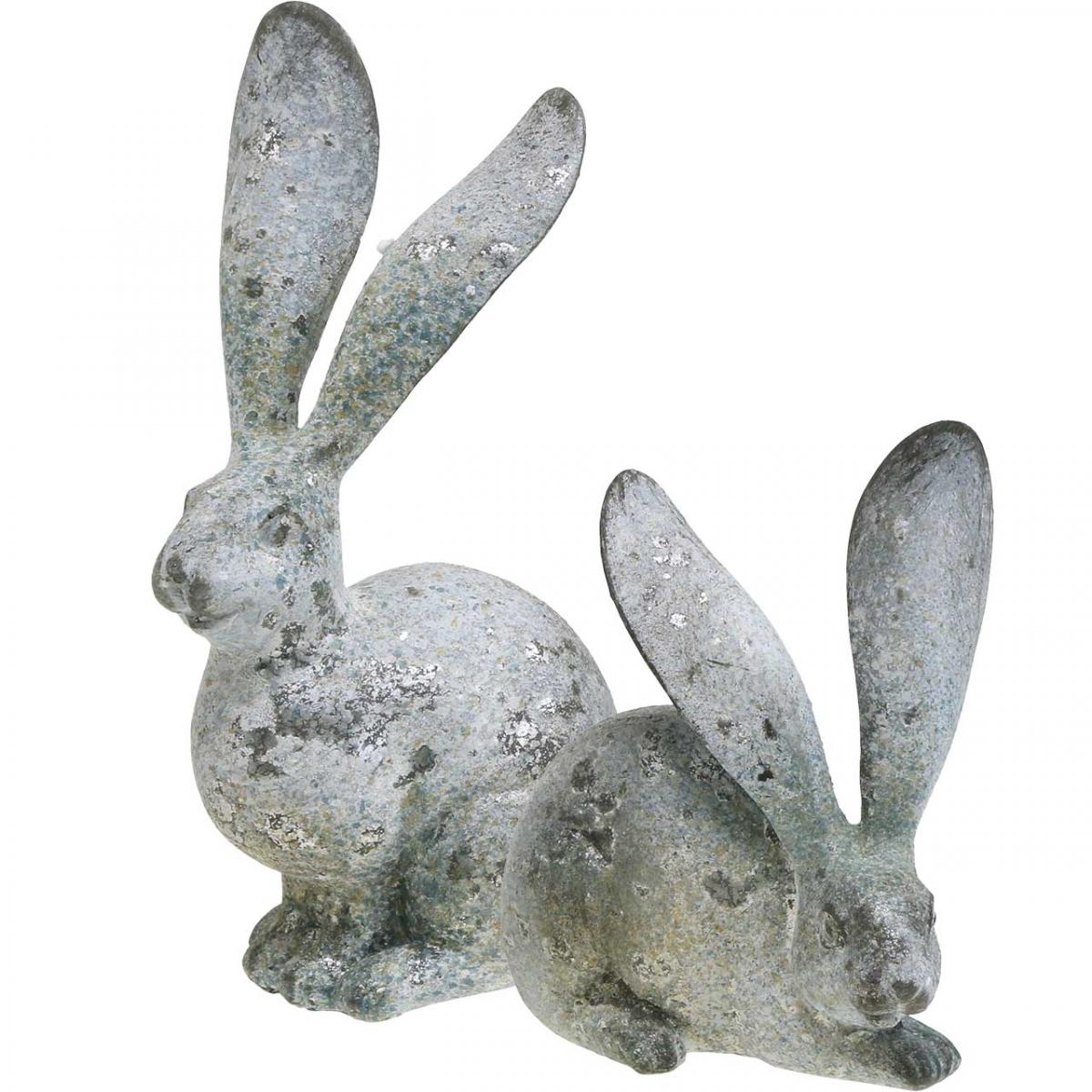 Lapin décoratif, figurine de jardin aspect béton, shabby chic, décoration de Pâques avec accents argentés H21/14 cm, lot de 2
