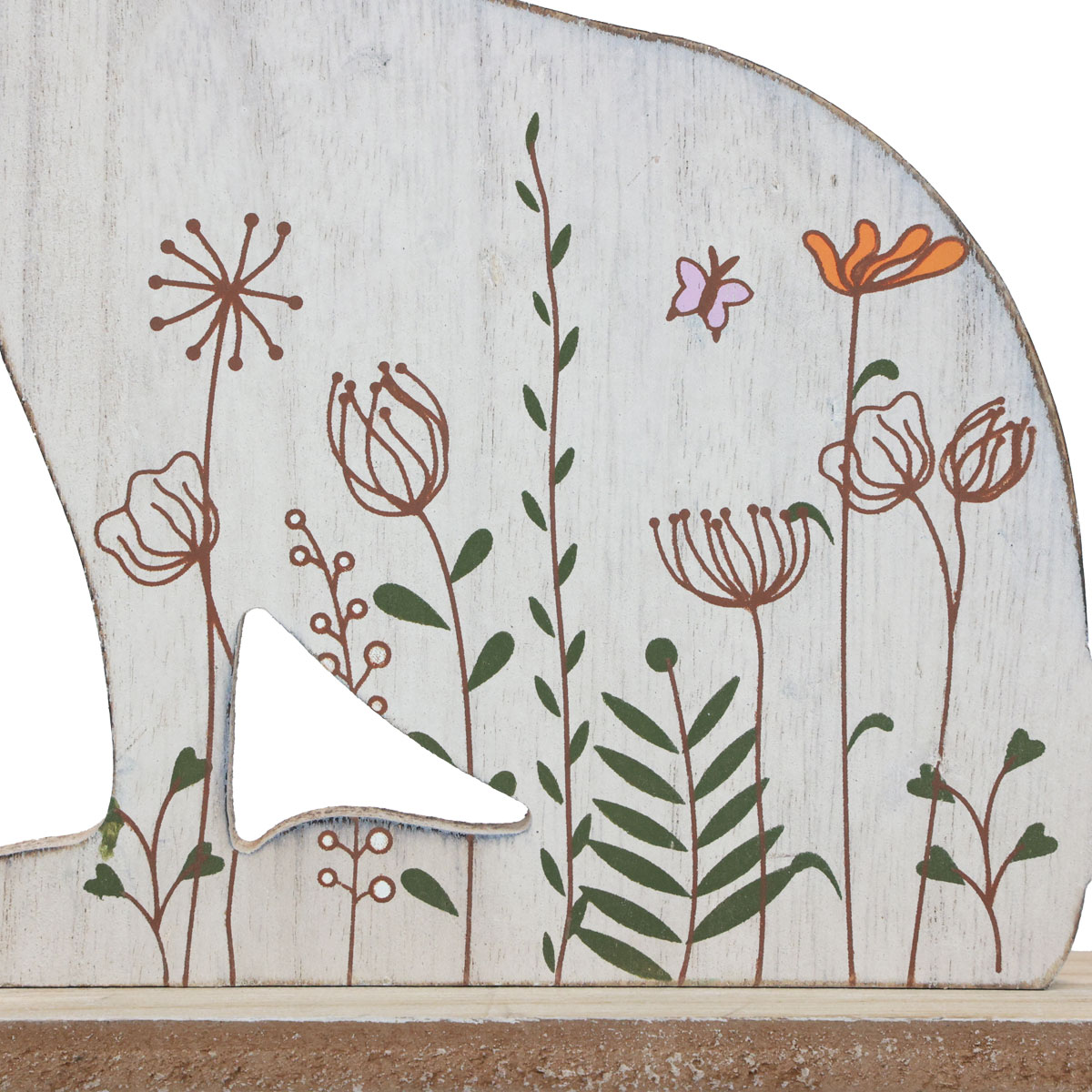 Unser sitzender Deko-Hase ist mehr als nur eine simple Osterdekoration. Mit seiner dezent geweißten Optik und den liebevoll aufgedruckten frühlingshaften Motiven, darunter blühende Blumen und ein lebhafter Schmetterling, avanciert dieser Holzhase schnell zum Mittelpunkt Ihrer Osterdeko. Der robuste Holzsockel bietet die ideale Basis für eine stabile Präsentation, sei es auf Ihrer Fensterbank, als Tischdeko zu Ostern oder in einem kunstvollen Osterkorb.