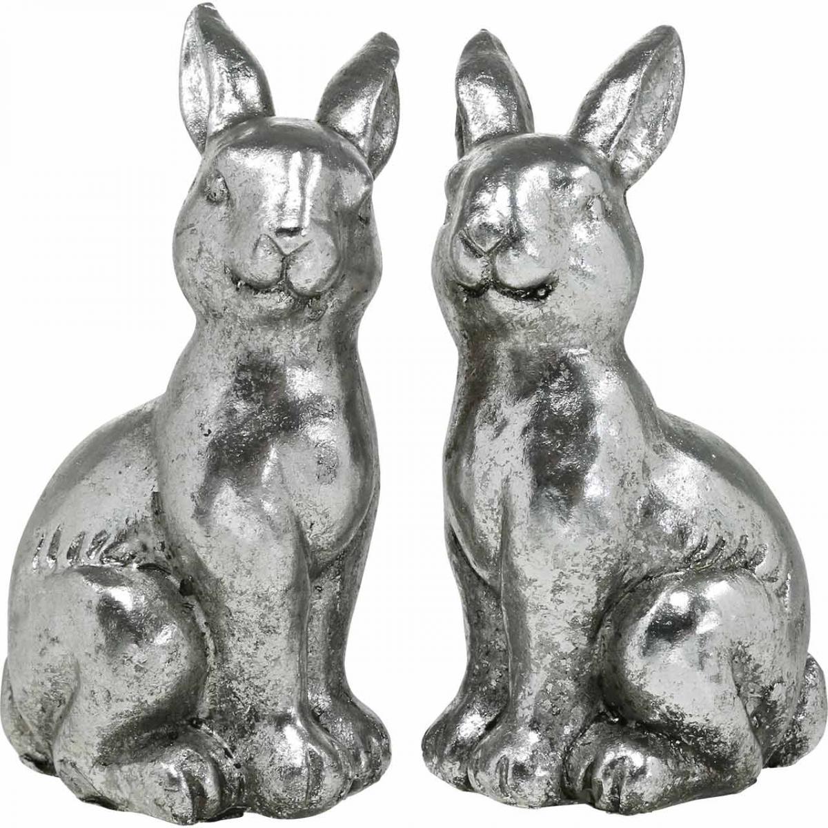 Lapin décoratif assis décoration de Pâques argent vintage H13cm 2 pcs