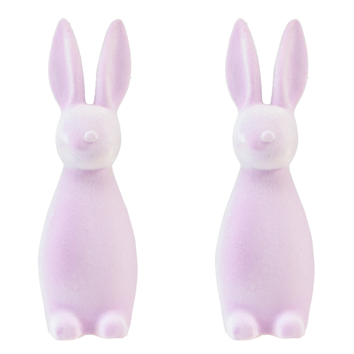 Lapins de Pâques décoratifs floqués – 2e choix – violet clair 8×10×29cm 2 pièces