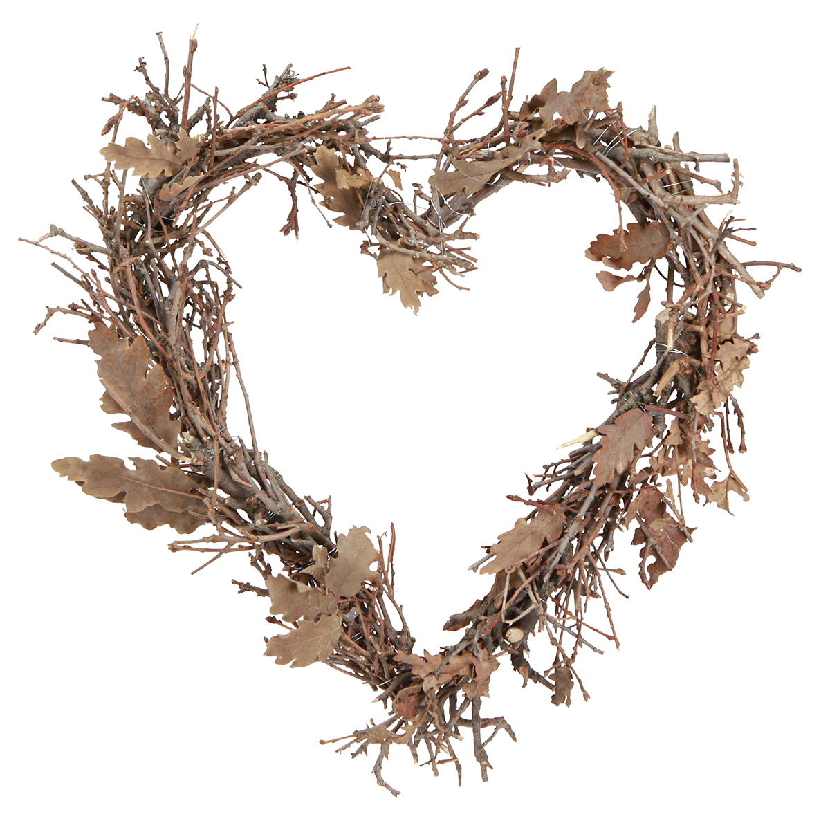 Couronne de porte décorative en forme de cœur, de style champêtre, composée de branches et de feuilles de chêne, décoration murale naturelle Ø28cm