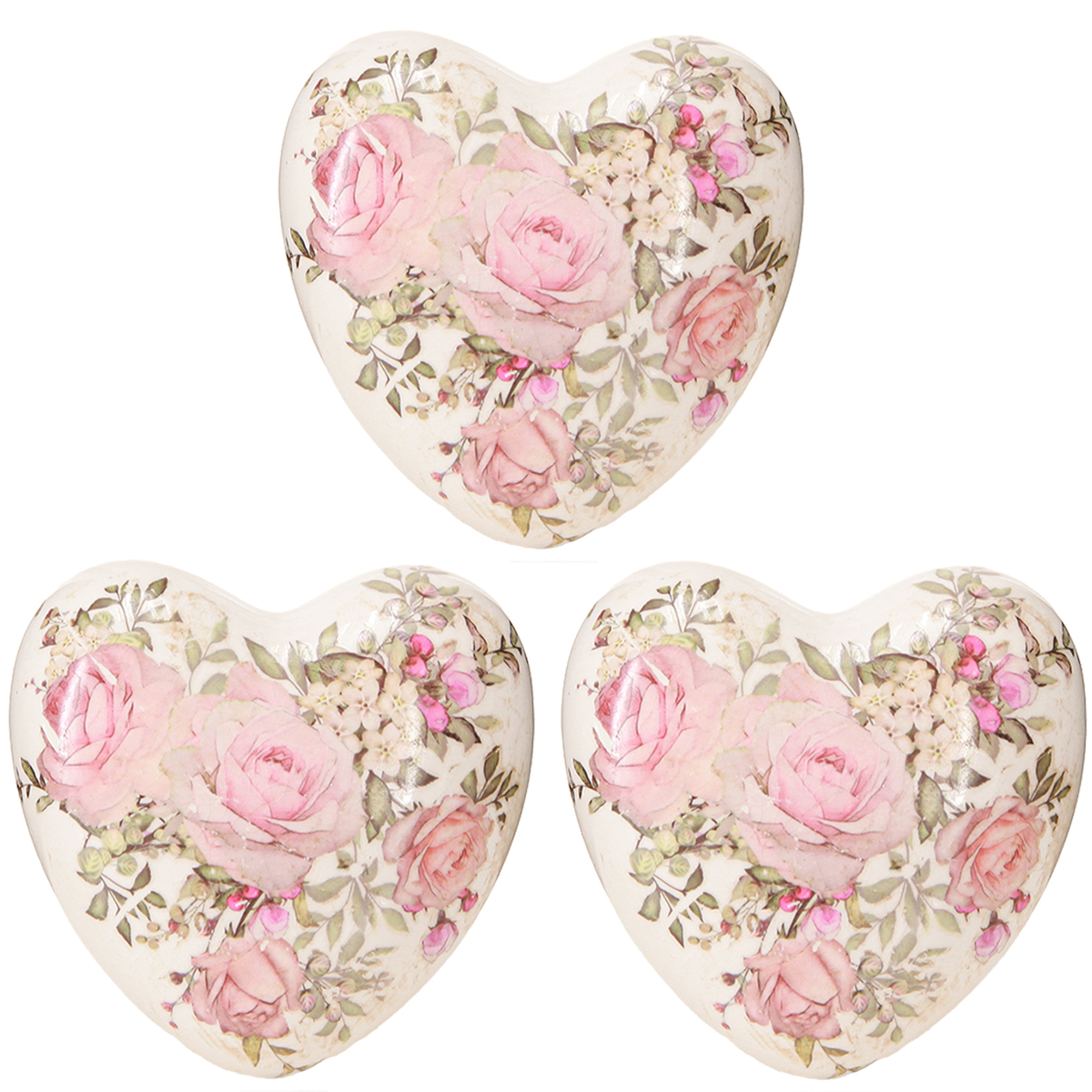 Coeurs décoratifs avec rose en céramique rose crème 8x8cm 3pcs