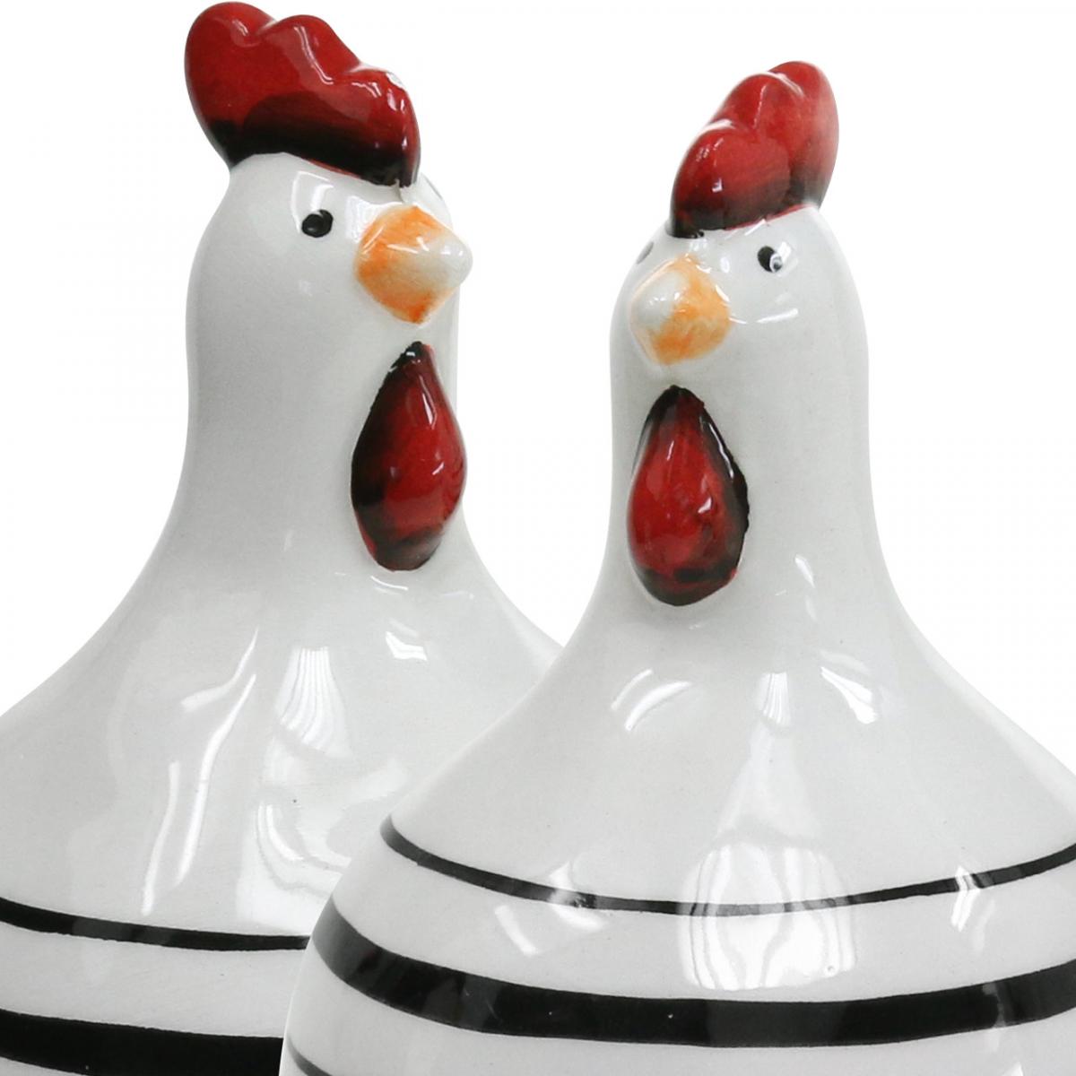 Pollo decorativo in ceramica bianco con strisce nere rotondo Ø 7cm H11cm 3 pz