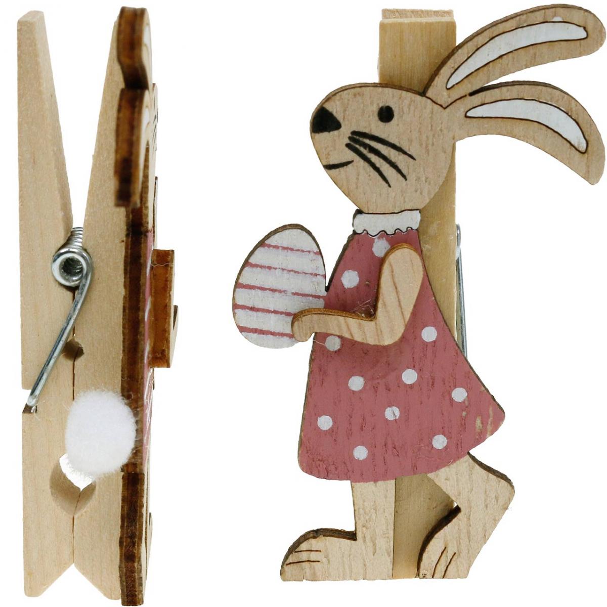 Clip decorative coniglietti Coniglietti pasquali rosa, legno bianco Decorazione pasquale 4pz