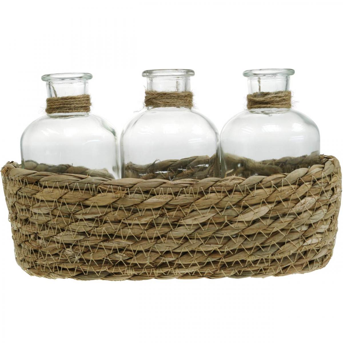 Deko Korb mit 3 Flaschen Tischdeko Seegras Natur 22×11,5×14cm