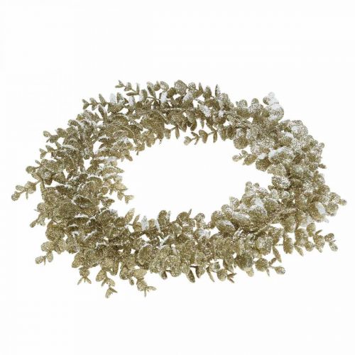 Déco couronne artificielle eucalyptus Doré, neigé Ø36cm