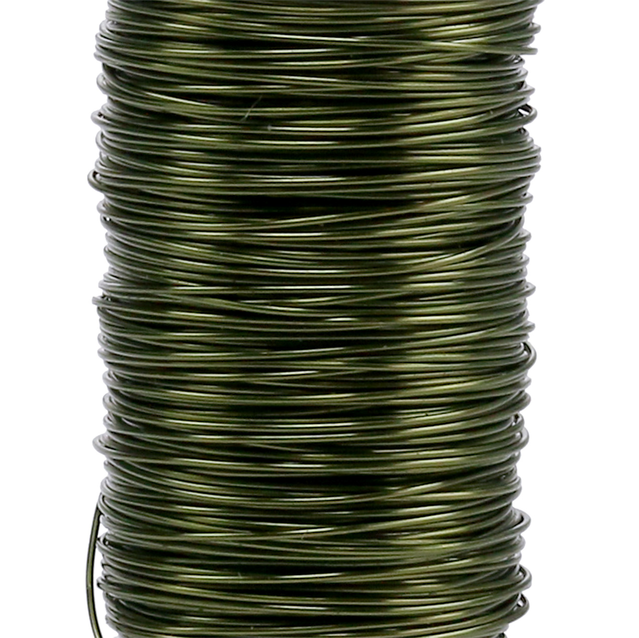 Vous recevrez notre fil de fer décoratif couleur vert olive sur une bobine qui pourra être suspendue de façon à faciliter la prise en main du fil. La bobine affiche un poids total de près de 100 grammes et le fil à lier a une longueur de pas moins de 50 mètres pour un diamètre d’environ 0,50 mm.