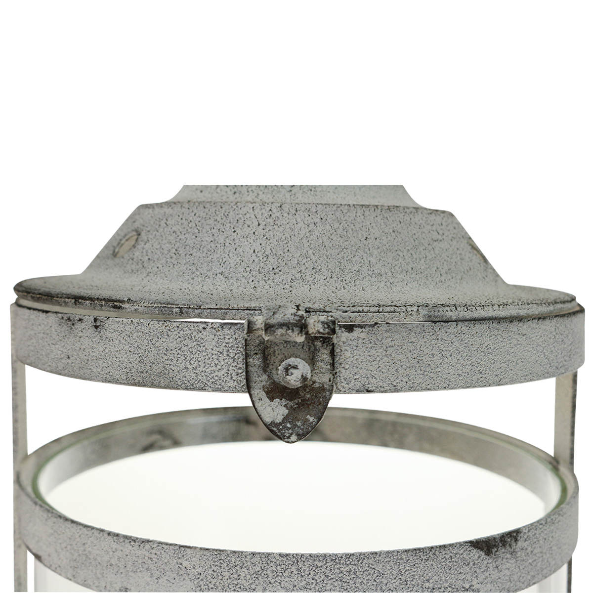 Questa lanterna decorativa trasuda shabby chic e un tocco di rusticità. Il vetro trasforma la lanterna in una suggestiva lanterna bianca.La lanterna decorativa poggia perfettamente sulla sua base, che si allarga verso il basso. Il vetro della lanterna protegge dalle correnti d'aria una candela, un lumino o anche una catena di luci a LED, in modo da poter installare la lanterna decorativa sul balcone o in giardino nelle calde e secche notti estive.