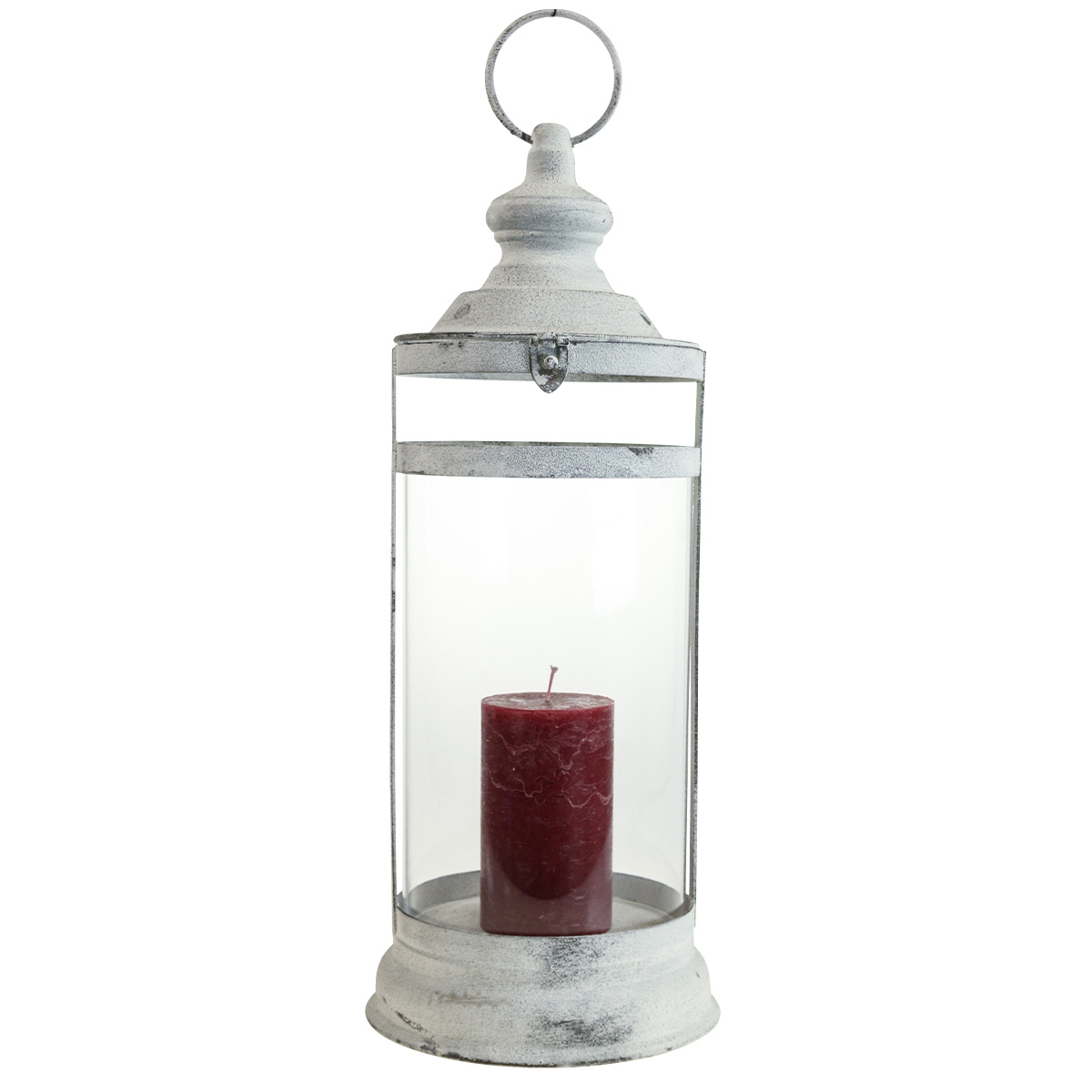 Lanterna Deco Lanterna Shabby Chic Metallo Bianco Ø15cm H46cm