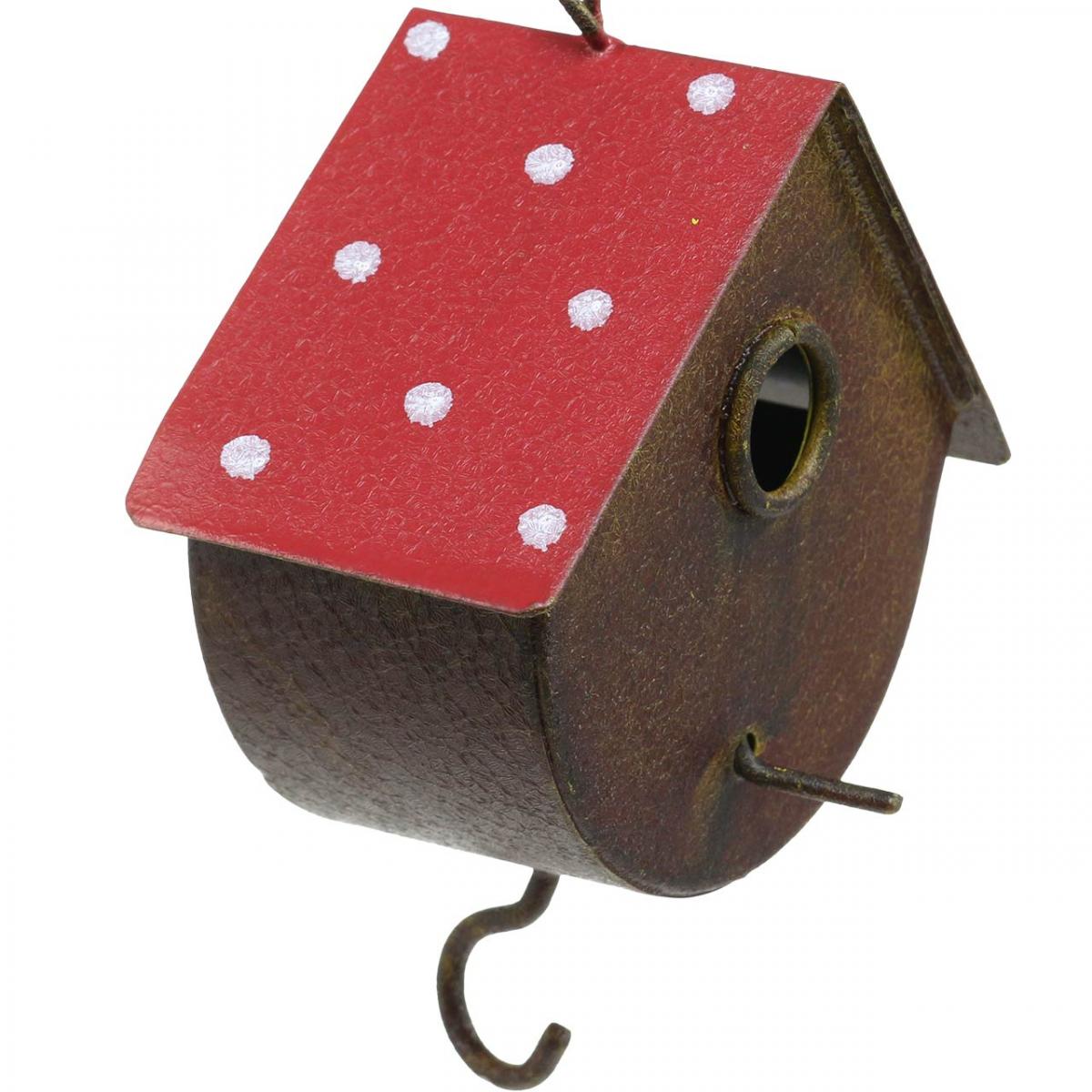 Questi nidi decorativi sono semplicemente carini con i loro tetti rossi con puntini bianchi: le casette per uccelli sembrano piccoli funghi da appendere.Le casette per uccelli decorative sono particolarmente adatte per l'autunno! Perché a parte una lunga catena di metallo con ganci per appenderla, l'originale decorazione in metallo ha un piccolo gancio sul lato inferiore sul quale puoi attaccare in un batter d'occhio una cinciallegra o delle noci nella rete o simili prelibatezze per gli amici pennuti. Appendi una o più piccole mangiatoie all'esterno della finestra, sul soffitto del balcone o in giardino e potrai osservare uccelli e scoiattoli mentre si nutrono.