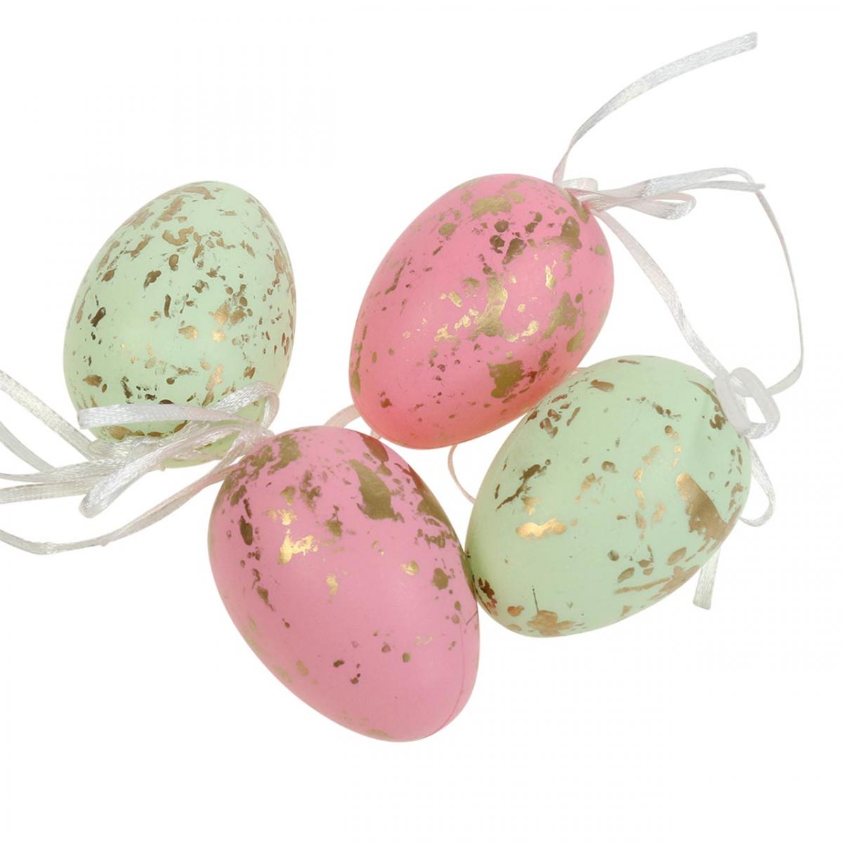 Deko Ostereier zum Aufhängen Rosa/Grün/Gold Osterdeko 12St