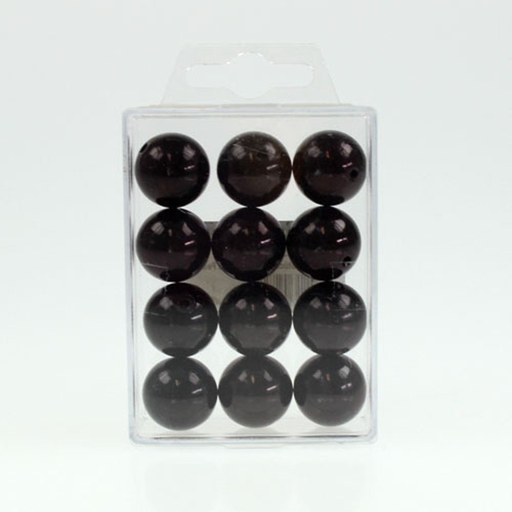 Die Deko-Perlen in Schwarz werden in einer Box zu insgesamt 12 Stück geliefert und haben einen Durchmesser von ungefähr 2 Zentimetern. Die Öffnungen haben dabei einen Durchmesser von etwa 4 Millimetern.