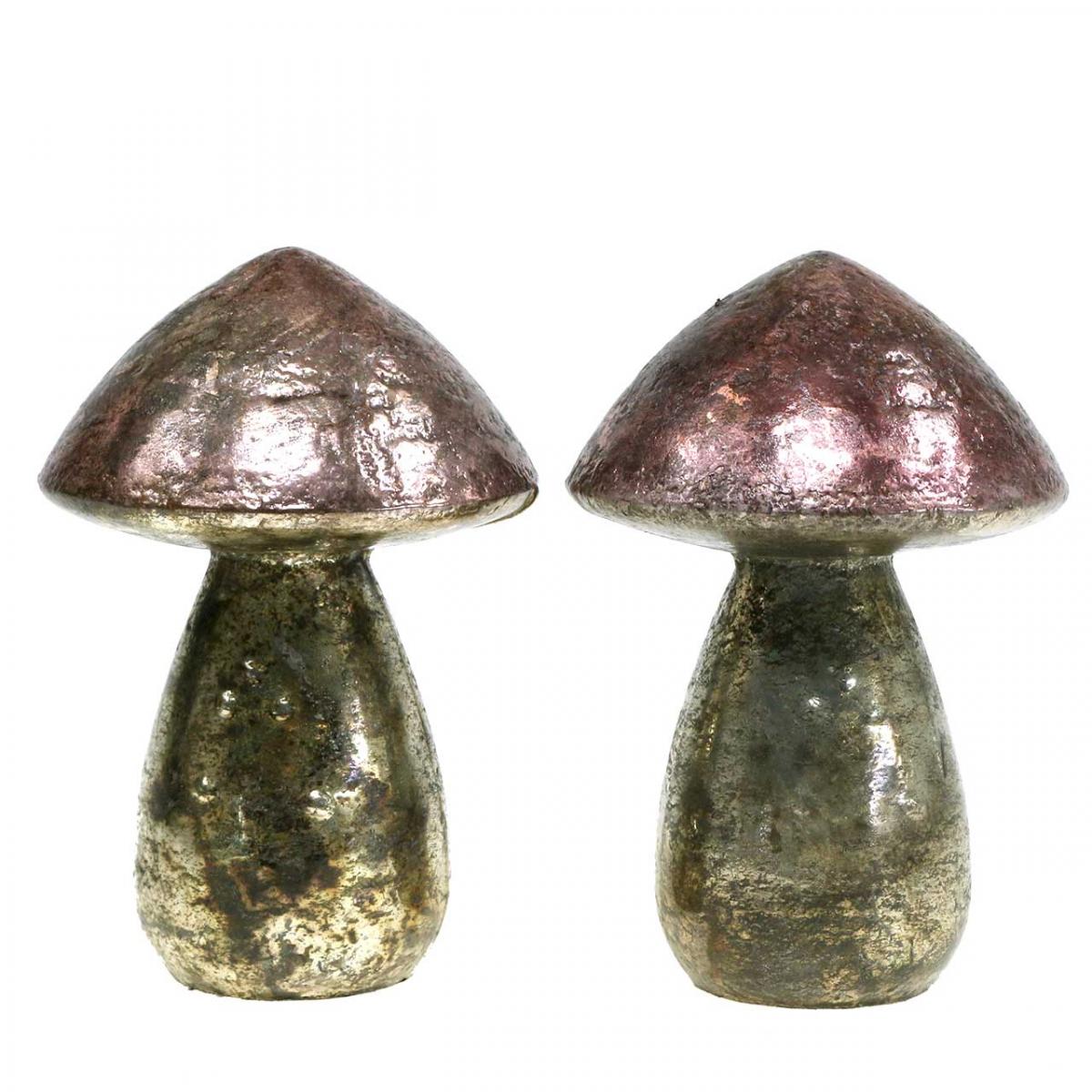 Champignons décoratifs décoration automne rose verre Ø9cm H13,5cm 2pcs