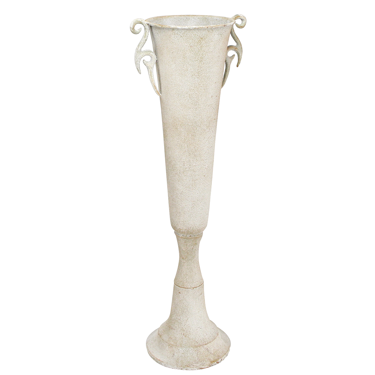 Deko-Pokal-Vase Vintage Metall Antik-Stil mit Griffen, Grau, Ø15cm H59cm, für Trockenblumen & Innendekoration