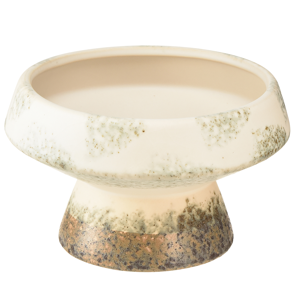 Deko Schale Keramik mit Sockel Creme Graugrün Ø17cm 10cm