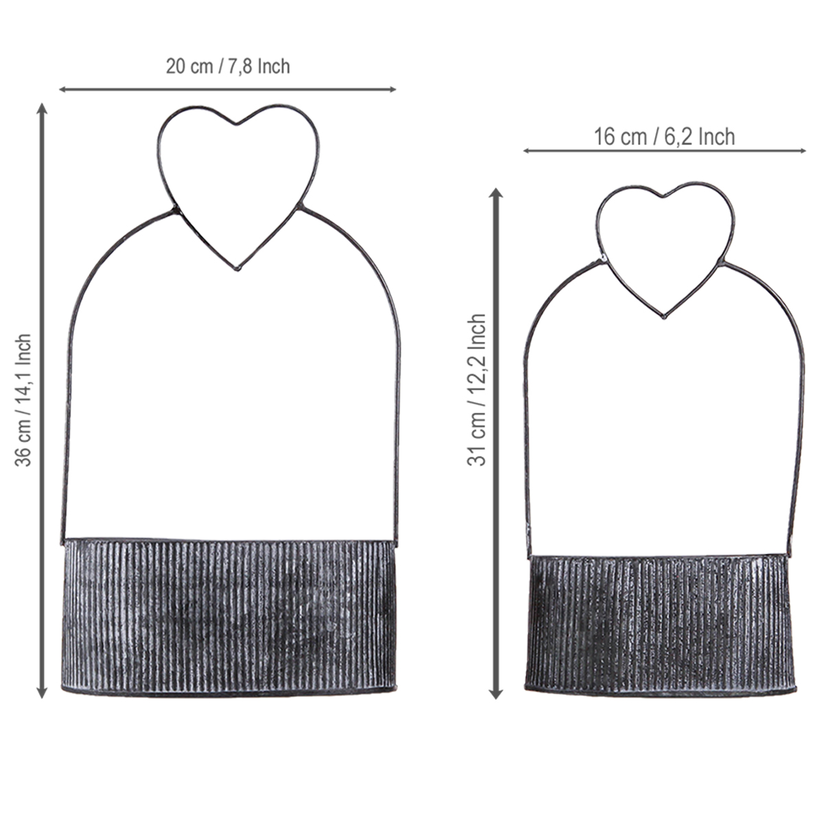 Aggiungi un tocco di stile alla tua casa con questa elegante ciotola decorativa dalla forma ovale e raffinata con un cuore. Queste ciotole decorative nere realizzate in robusto metallo sono ideali per aggiungere un tocco di eleganza a qualsiasi stanza. La forma a cuore delle ciotole le rende un elemento decorativo speciale, perfetto per portare amore e armonia nel tuo arredamento. Entrambe le ciotole presentano delle sottili scanalature bianche che creano un look vintage e completano con stile il vostro spazio abitativo. Il set è composto da due ciotole di diverse dimensioni che possono essere utilizzate in vari modi. Sui manici è posizionato un delicato cuore di filo metallico, che non è solo decorativo, ma può anche essere decorato individualmente. Utilizzate le ciotole come eleganti decorazioni per la tavola del soggiorno, come creative composizioni da tavola per le occasioni festive o per presentare con stile le piante. Le ciotole in metallo si possono abbinare meravigliosamente ad altri elementi decorativi, sia in stile industriale che come complemento di un interno moderno.