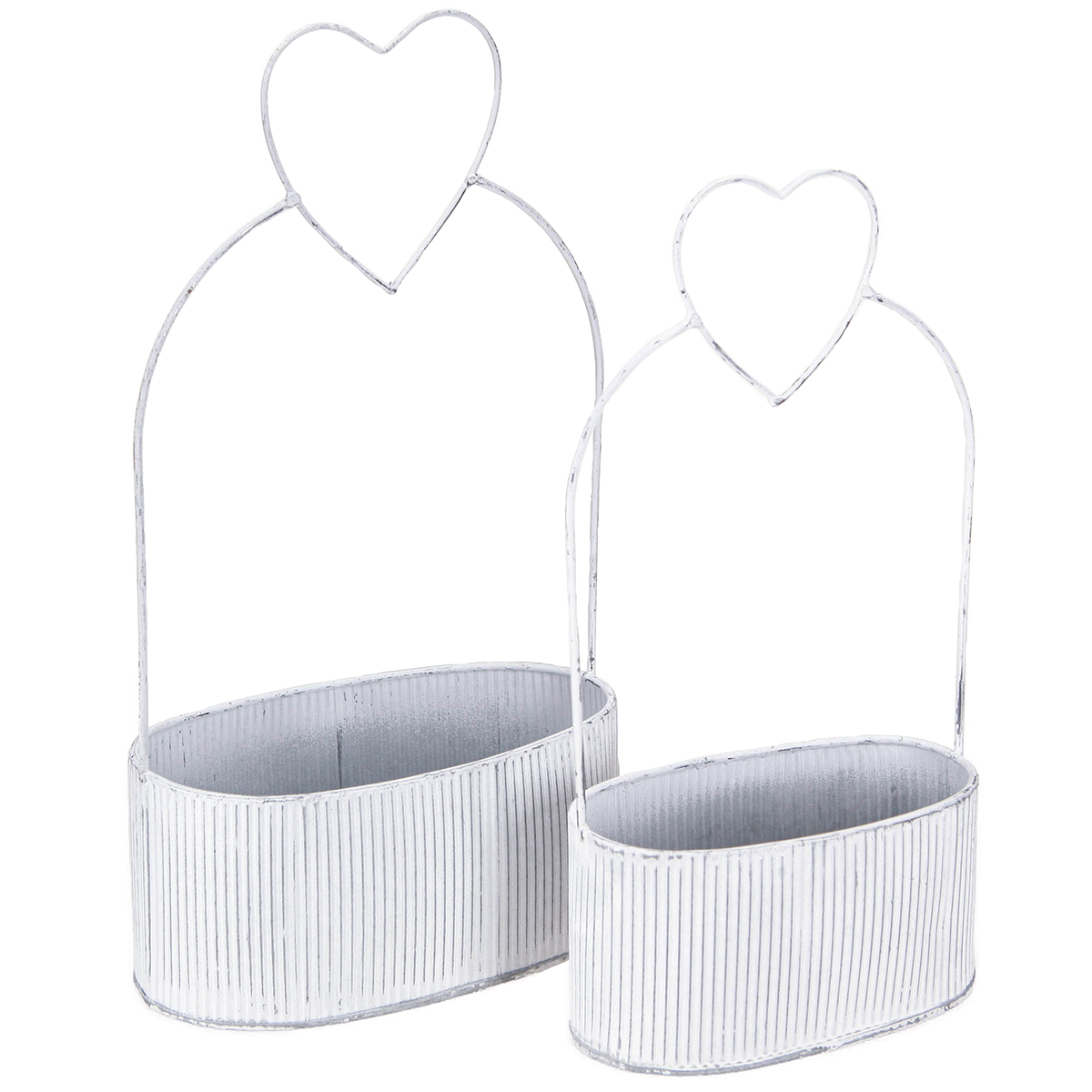 Dieses charmante 2er-Set aus Metall-Deko-Schalen in einem anmutigen ovalen Design ist die perfekte Ergänzung für jedes Zuhause, das einen Hauch von romantischer Raffinesse benötigt. Die weiß gehaltenen Übertöpfe mit Herzmuster verströmen eine klassische Eleganz, die sich ideal mit verschiedenen Einrichtungsstilen kombinieren lässt. Ob Landhaus, Shabby Chic oder moderner Minimalismus – diese herzförmig geprägten Schalen harmonieren perfekt mit Ihrer bestehenden Dekoration. Die Rillen mit metallisch grauem Abrieb sorgen für einen trendigen Vintage-Look, der Liebhaber von nostalgischem Design begeistert. Die beiden Schalen in unterschiedlichen Größen sind nicht nur für stilvolle Tischdeko geeignet, sondern bieten auch zahlreiche kreative Dekorationsmöglichkeiten wie die Bepflanzung mit Sukkulenten oder das Anrichten von Kerzen. Kombinieren Sie diese ovalen Schalen mit anderen liebevoll ausgewählten Wohnaccessoires aus weißem Metall von Floristik24 für ein harmonisches Gesamtbild. Die Drahtherzen an den Henkeln bieten zusätzlich die Gelegenheit, durch kleine Loops ein individuelles Flair zu schaffen.