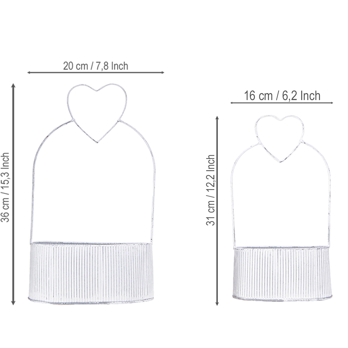 Questo grazioso set di due ciotole decorative in metallo dal grazioso design ovale è l'aggiunta perfetta a qualsiasi casa che cerchi un tocco di romantica raffinatezza. I vasi bianchi con motivo a cuore emanano un'eleganza classica che si abbina perfettamente a diversi stili d'arredo. Che si tratti di stile rustico, shabby chic o minimalismo moderno, queste ciotole in rilievo a forma di cuore si armonizzano perfettamente con l'arredamento esistente. Le scanalature con abrasione grigio metallizzato creano un look vintage alla moda che delizierà gli amanti del design nostalgico. Le due ciotole di diverse dimensioni non sono adatte solo per decorare con stile la tavola, ma offrono anche numerose possibilità decorative creative, come ad esempio piantare piante grasse o disporre candele. Abbina queste ciotole ovali ad altri accessori per la casa in metallo bianco, accuratamente selezionati da Floristik24, per ottenere un effetto complessivo armonioso. I cuori di filo metallico sui manici offrono inoltre la possibilità di creare un tocco individuale con piccoli anelli.
