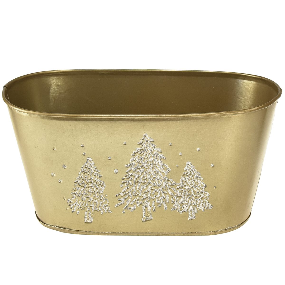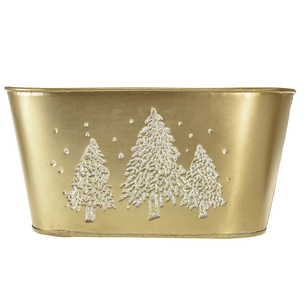 ✔ Festosa fioriera dorata con scintillante motivo ad albero di Natale