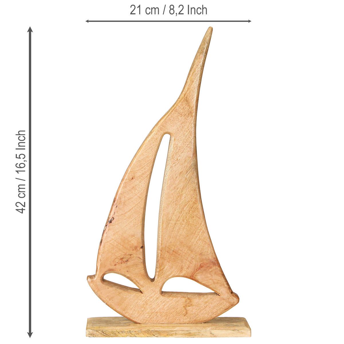 Deko Segelboot Holz auf Sockel Natur Maritim H57,5cm
